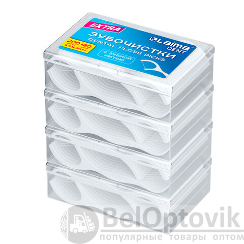 Зубочистки-флоссеры с зубной нитью "200 шт. (4х50 шт.) + 20 в подарок!", в боксе, LAIMA DENT, 609406