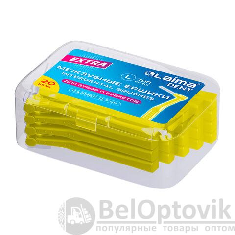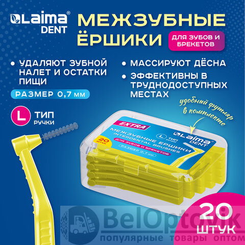 Межзубные ершики 0,7 мм для зубов и брекетов 20 шт., в боксе, изогнутая ручка (L-тип), LAIMA DENT, 609410