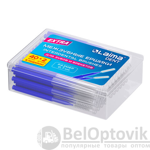 В комплекте 40 (+2) межзубных ёршика, упакованных в удобный пластиковый бокс с крышкой.