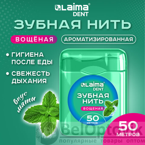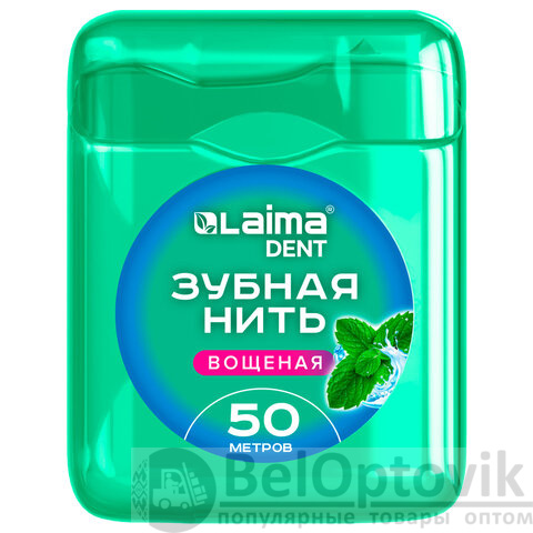 Зубная нить вощеная 50 м, мягкая забота о деснах, ВКУС МЯТЫ, LAIMA DENT, 609413