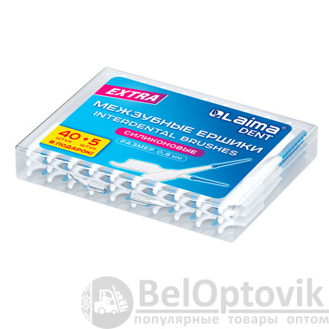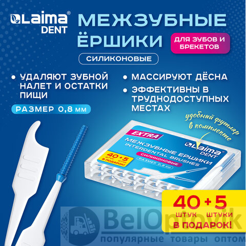 Межзубные ершики 0,8 мм силиконовые "40 + 5 шт. в подарок!", в боксе, для зубов и брекетов, LAIMA DENT, 609417