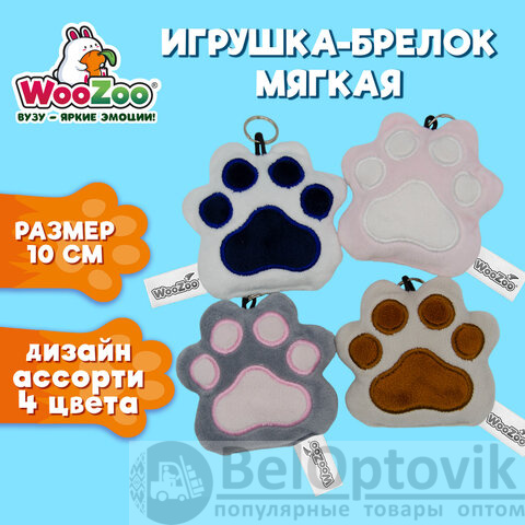 Игрушка-брелок мягкая "КОШАЧЬЯ ЛАПКА", ткань Вельбоа, ассорти, 10х10см, 4 цвета, WOOZOO (ВУЗУ), 666975