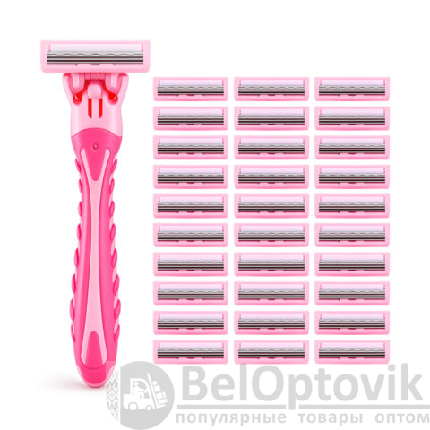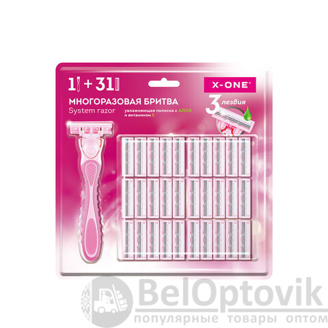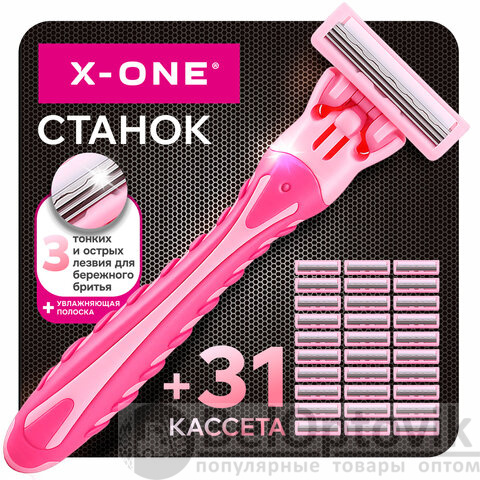 Бритвенный станок многоразовый женский, 3 лезвия, 31 кассета, розовый, X-ONE, 700025