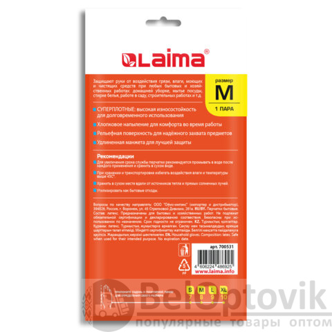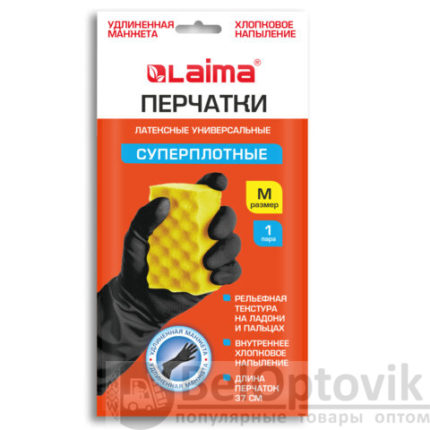 Универсальные суперплотные латексные перчатки LAIMA защищают руки от воздействия грязи, влаги, моющих и чистящих средств при любых бытовых и хозяйственных работах: мытьё посуды, стирка белья, уборка, садоводческая работа и т.д.