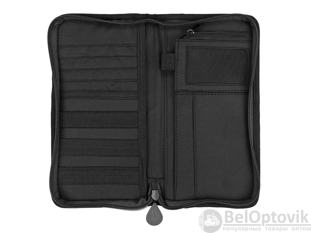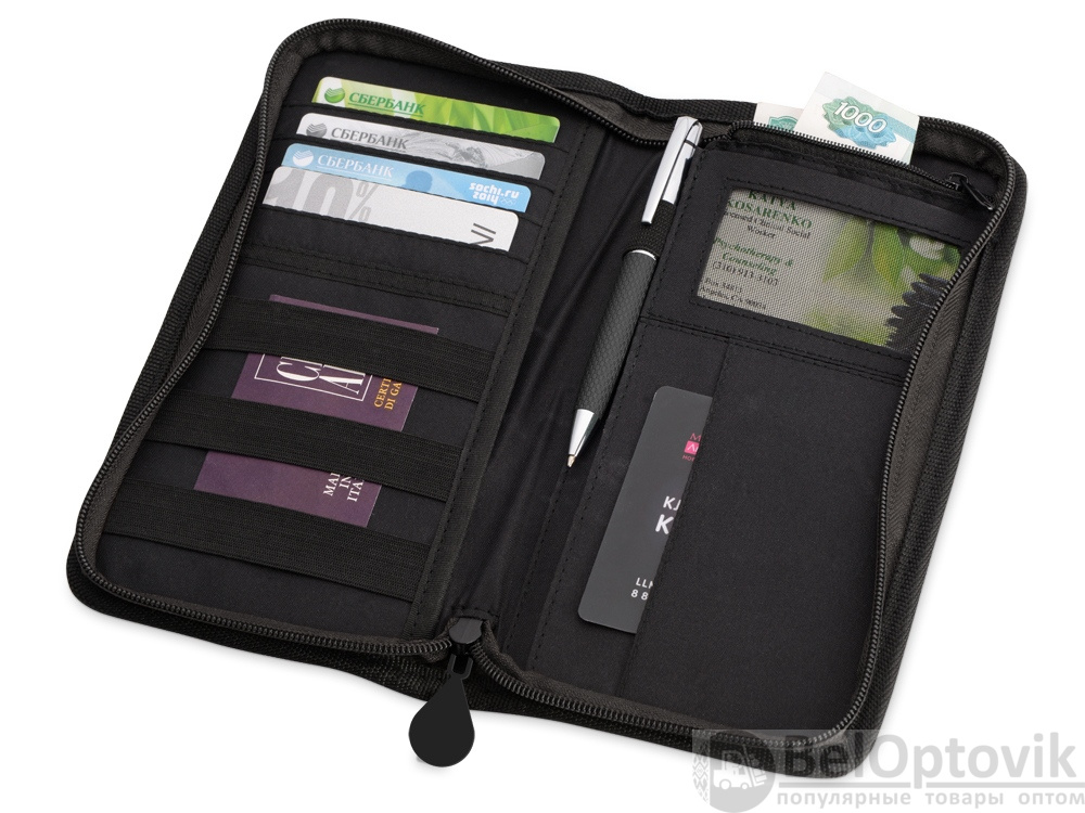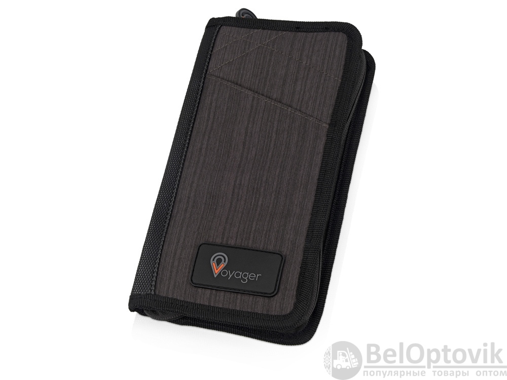 Портмоне для путешествий из прочного полиэстера сделает любую поездку более комфортной. Здесь предусмотрено место для паспорта, билетов и денег, кармашки для пластиковых карт, удобный держатель для ручки и фиксаторы на резинках для карточек или документов. Портмоне закрывается на молнию, а на его внешней стороне предусмотрен дополнительный карман для посадочного талона или других документов, которые приходится все время доставать. Портмоне «Вест» – прекрасный подарок для тех, кто любит путешествовать и проводит много времени в разъездах.