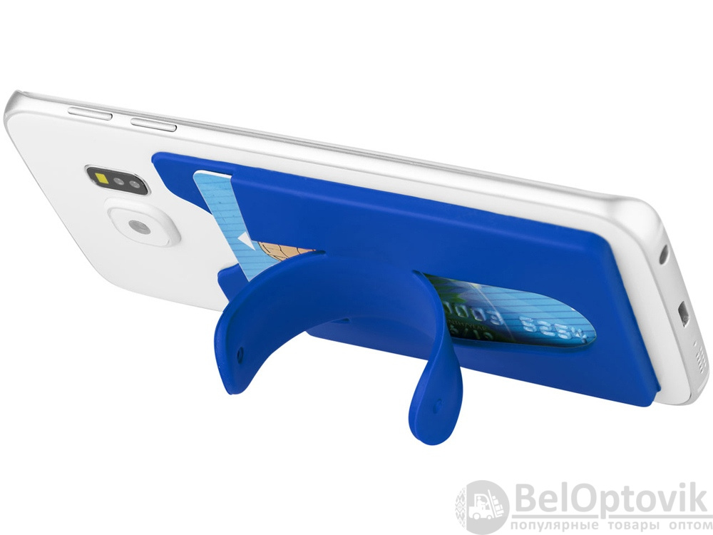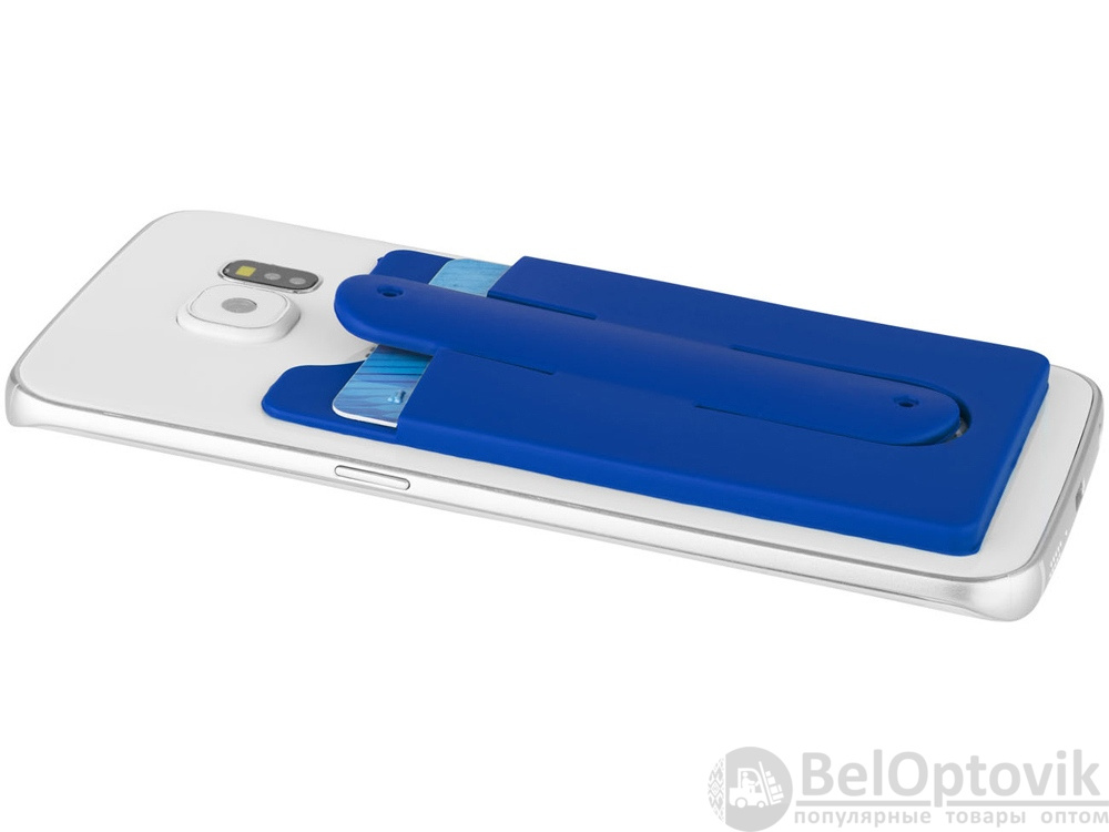 Чехол для карт с держателем мобильного. Этот мягкий защитный силиконовый чехол с помощью клейкой ленты можно легко прикрепить на задней стороне телефона. В нем можно разместить от 2 до 3 кредитных карт и / или удостоверения личности. Он также может быть использован в качестве подставки для телефона. Чехол достаточно тонкий и легко помещается в кармане. Силикон.