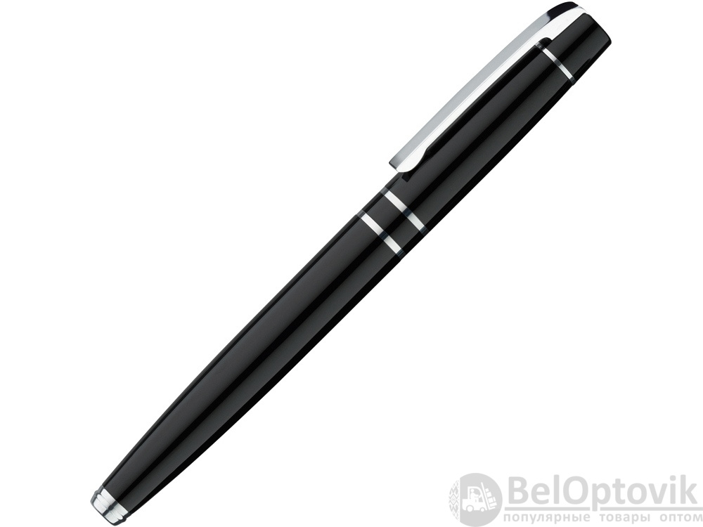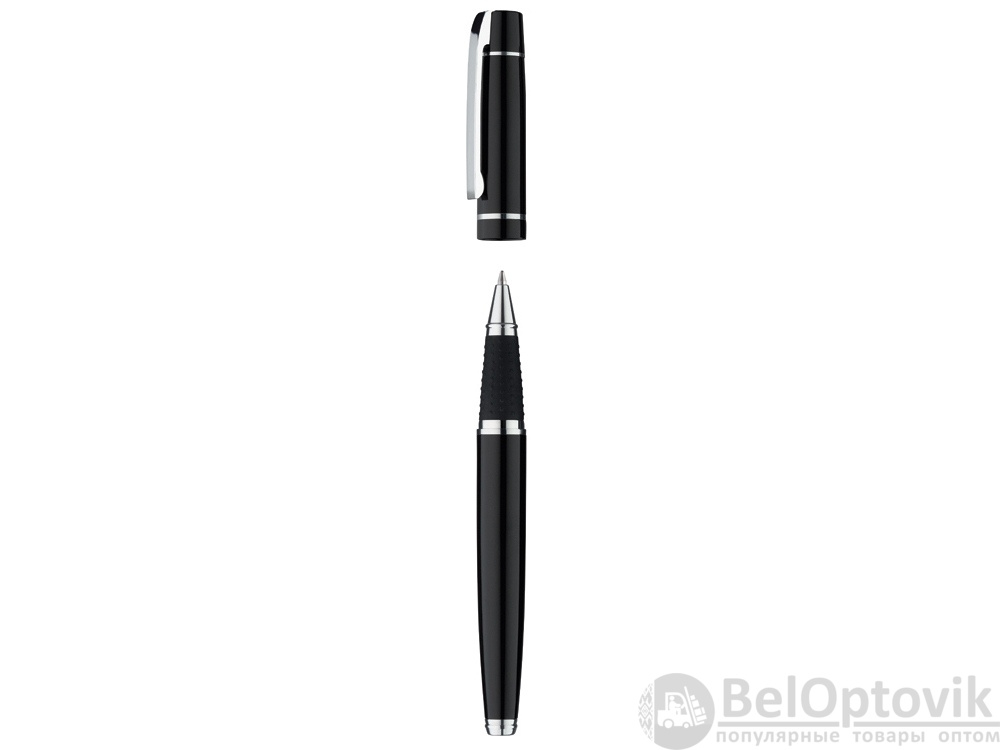 Металлическая ручка-роллер с пружинным клипом и нескользящей прорезиненной зоной захвата черного цвета. Фурнитура с глянцевой хромированной отделкой.
