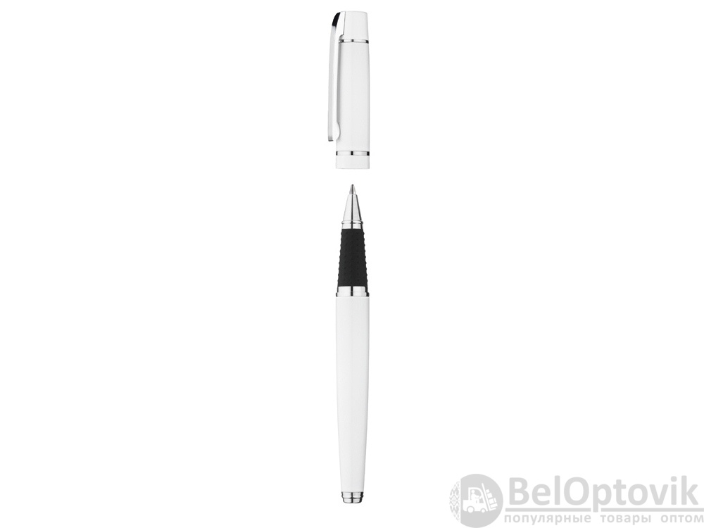 Металлическая ручка-роллер с пружинным клипом и нескользящей прорезиненной зоной захвата черного цвета. Фурнитура с глянцевой хромированной отделкой.