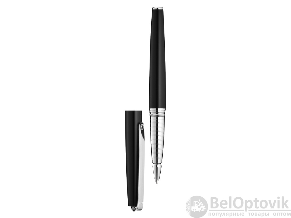 Металлическая ручка-роллер с глянцевым корпусом, длинным гибким металлическим клипом, декоративное кольцо и заглушка с глянцевой хромированной отделкой. Рифленая зона захвата с глянцевой хромированной отделкой.
