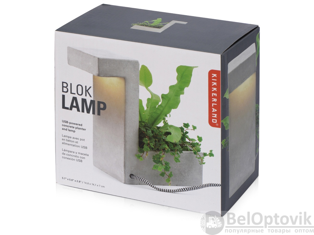 Настольная бетонная лампа «Blok Lamp» имеет одновременно две функции - функцию лампы и кашпо для живых растений. LED-светодиоды имеют приятный, теплый свет, отлично освещая поверхность и позволяя комфортно заниматься своими делами в любое время суток. Устройство работает от любого USB-разъема и потребляет минимальное количество энергии. А классное дополнение в виде кашпо для выращивания растений – позволит очень стильно украсить любой интерьер. Внимание - кашпо не имеет дренажного отверстия.