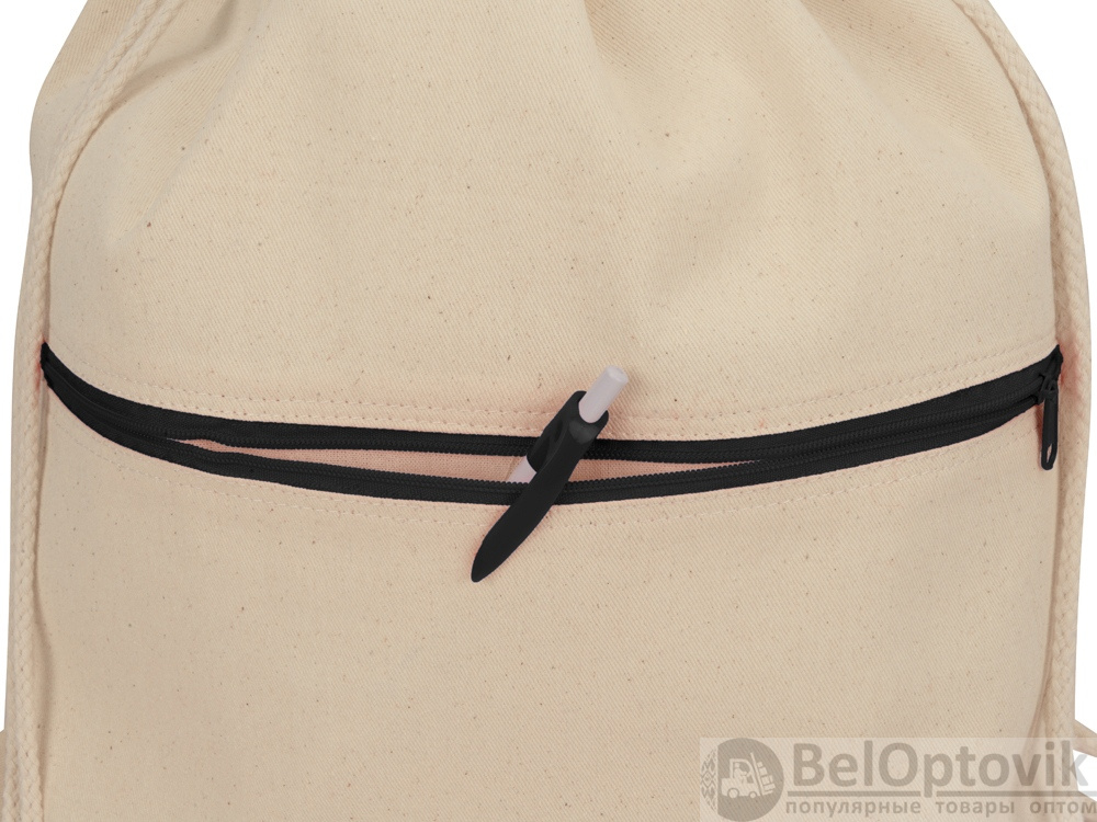 Мешок из плотного натурального хлопка. Большой вместительный карман снаружи застегивается на яркую молнию.