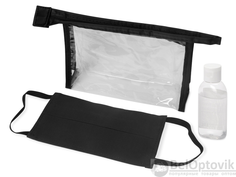 Набор средств индивидуальной защиты «Лайт», Цвет косметичка- прозрачный/черный, маска- черный