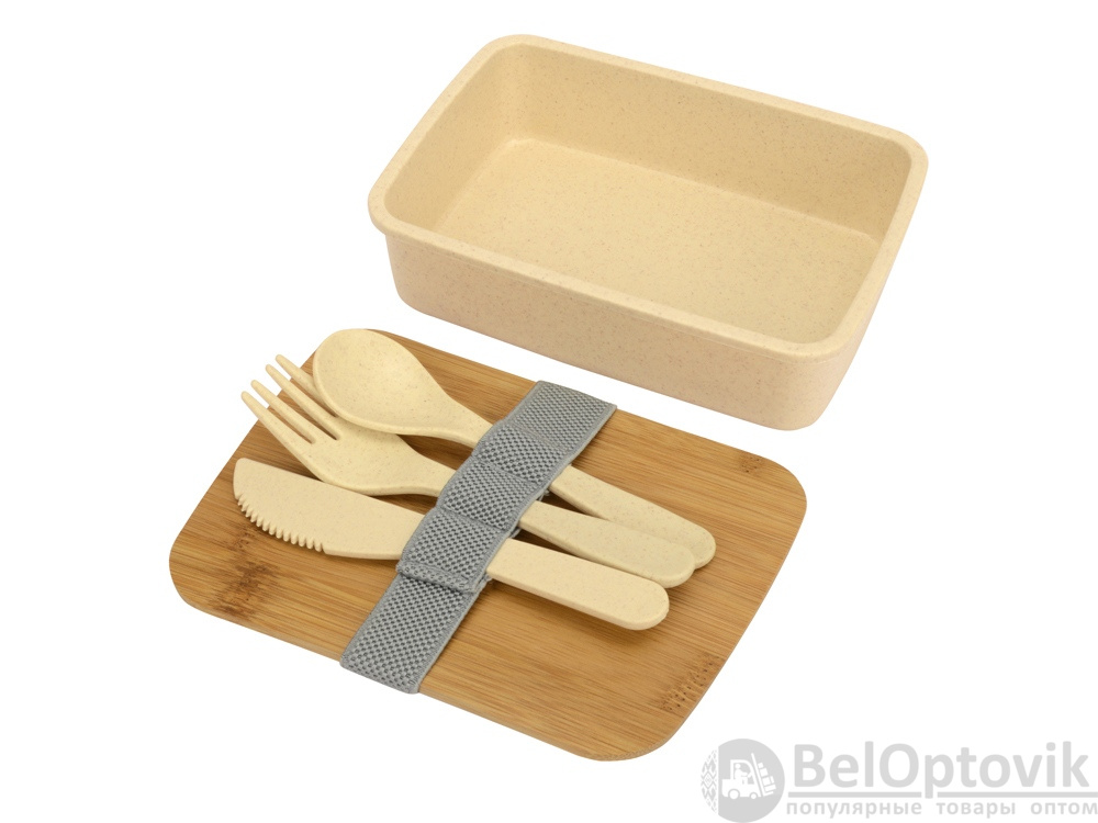 Ланч-бокс «Lunch» из пшеничного волокна с бамбуковой крышкой, 500 мл Цвет бежевый