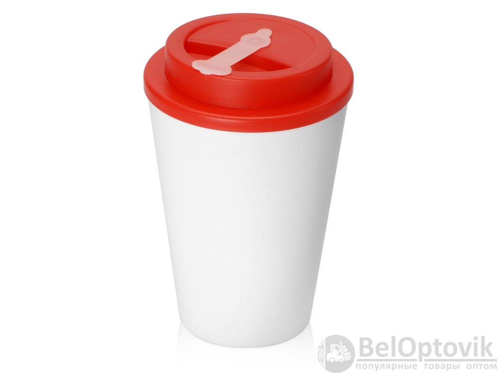 Пластиковый стакан с двойными стенками «Take away», Цвет белый/красный