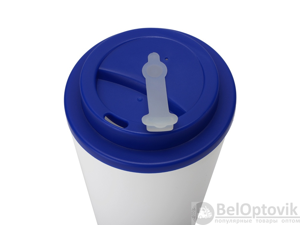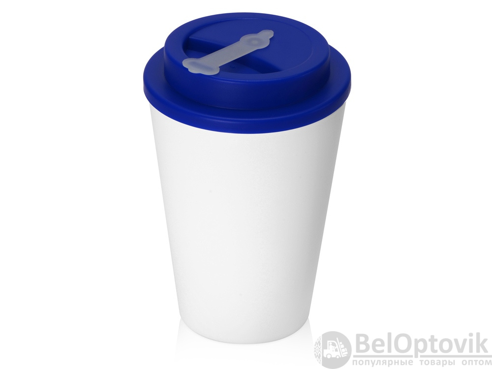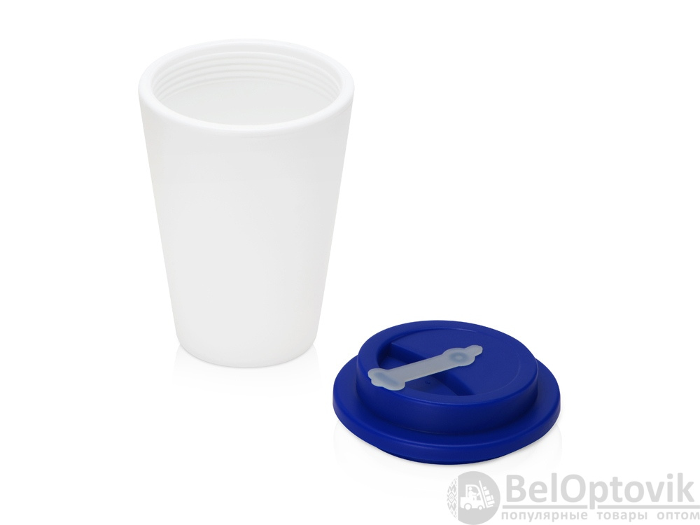 Пластиковый стакан с двойными стенками «Take away», Цвет белый/темно-синий