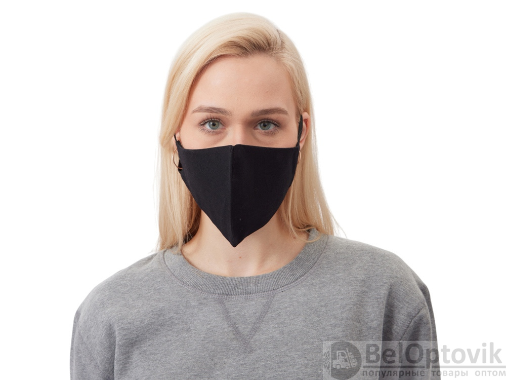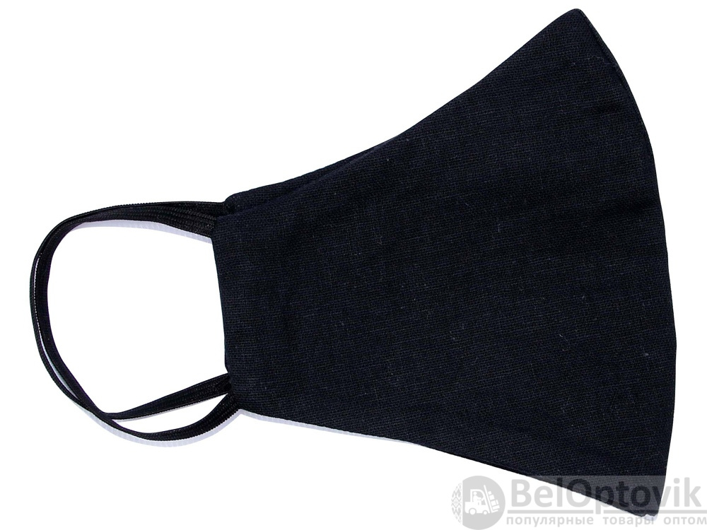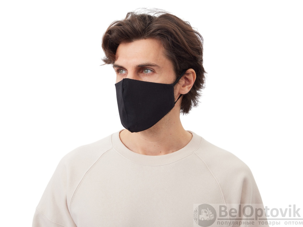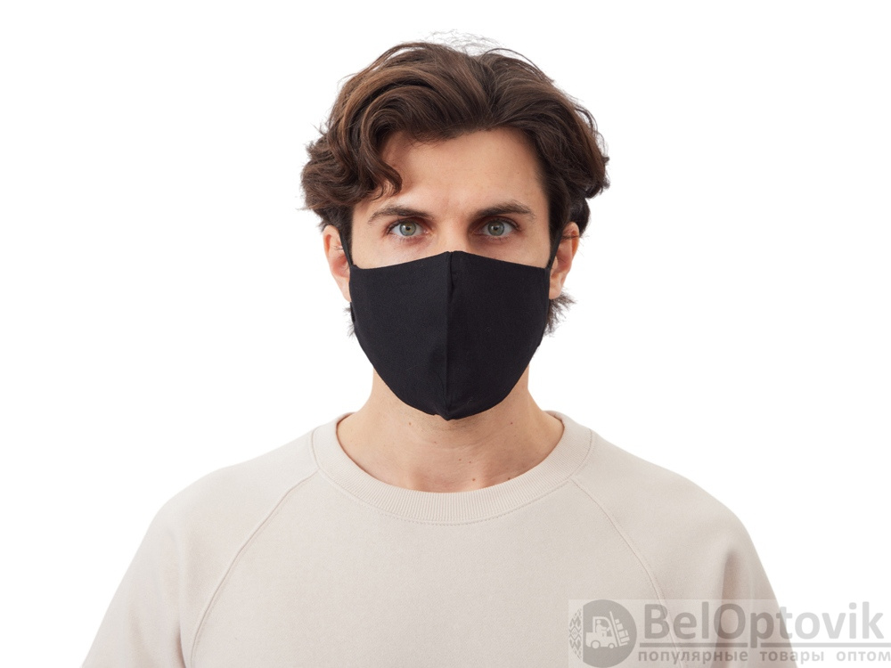 Маска для лица многоразовая из хлопка, анатомической формы без шва, Цвет черный
