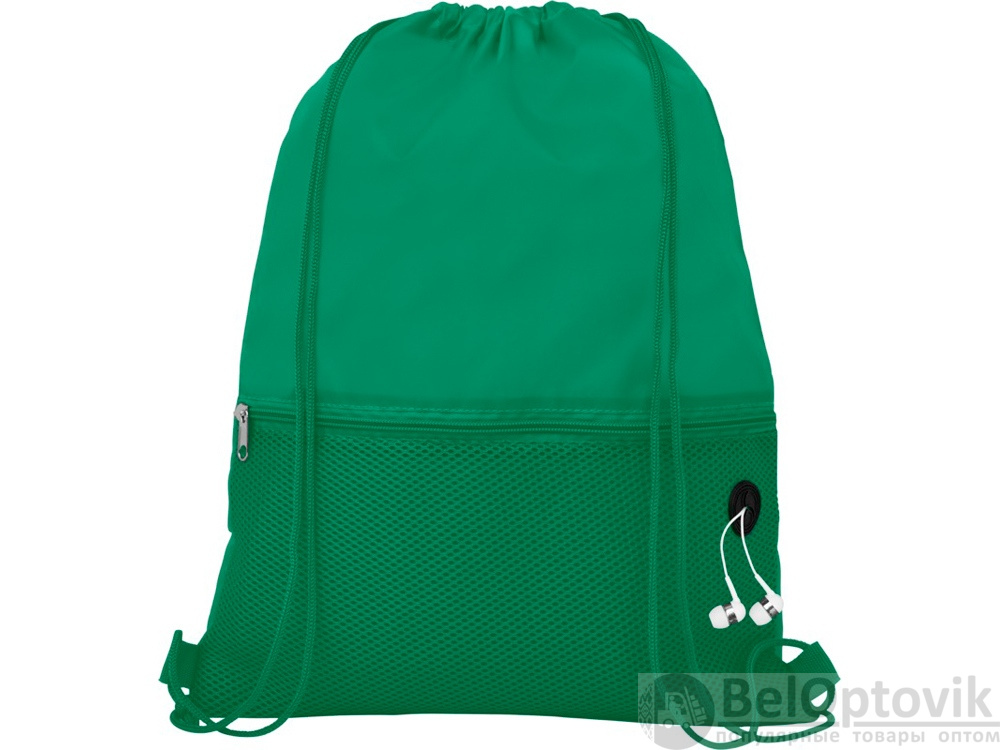 Рюкзак со шнурком и главным отделением на шнуровке в цвет изделия. Имеет один передний сетчатый карман на молнии и порт для наушников. Прочность до 5 кг.