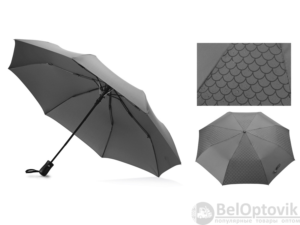 Зонт-полуавтомат с куполом из эпонжа. Рисунок на куполе проявляется, когда зонт намокает под дождем. По мере высыхания купола, рисунок на нем исчезает. Зонт не согнется при сильных порывах ветра и защитит от промокания, так как его каркас снабжен специальной системой противоветровой защиты. Ручка с мягким покрытием soft-touch для большего комфорта.