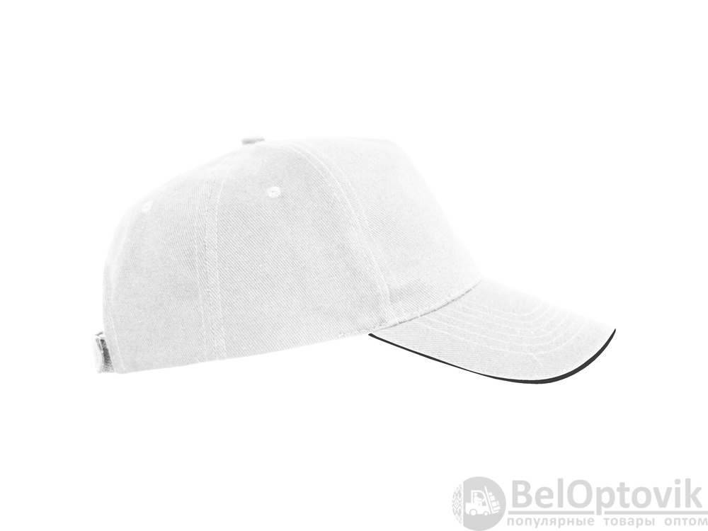 Бейсболка из 5 панелей с контрастным сэндвичем. Четыре вышитых вентиляционных люверса. Застежка на липучку.