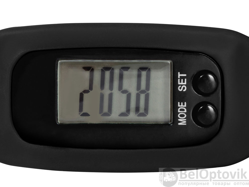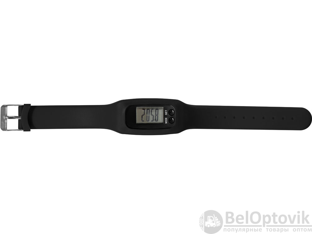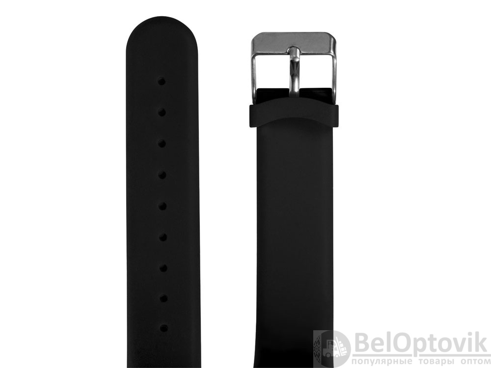 Наручные часы с возможностью отображения времени, калорий, шагов и дистанции. Есть переключение между метрической и британской системами измерений. На силиконовом ремешке можно сделать гравировку. Часы упакованы в пластиковую коробку, которую можно использовать для нанесения. Батарейка в комплекте.