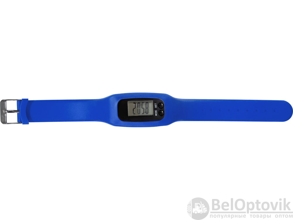Наручные часы с возможностью отображения времени, калорий, шагов и дистанции. Есть переключение между метрической и британской системами измерений. На силиконовом ремешке можно сделать гравировку. Часы упакованы в пластиковую коробку, которую можно использовать для нанесения. Батарейка в комплекте.