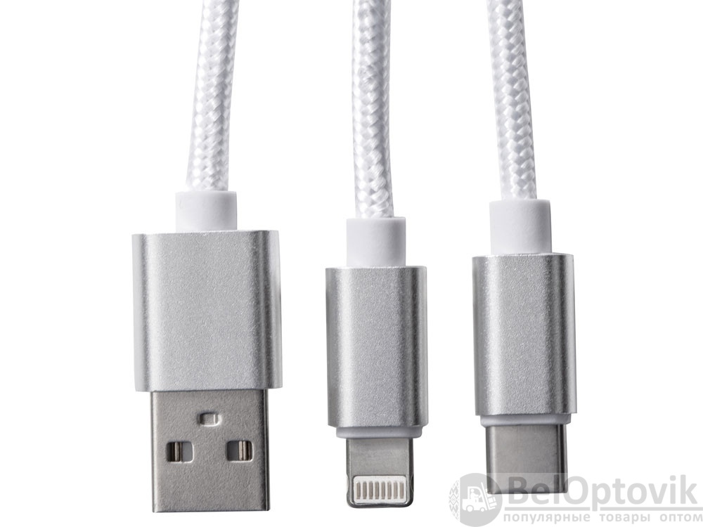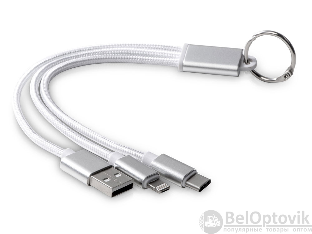 Кабель для зарядки «Tres» 3-в-1 с брелоком, коннекторами 1 type с, 1 USB type A и двойным совместимым коннектором «2-в-1» для устройств с ОС Apple® iOS и Android. В комплект входит брелок. Для зарядки устройств Apple подключайте кабель стороной без контактов; для зарядки устройств с ОС Android подключайте кабель стороной с контактами. Алюминий.