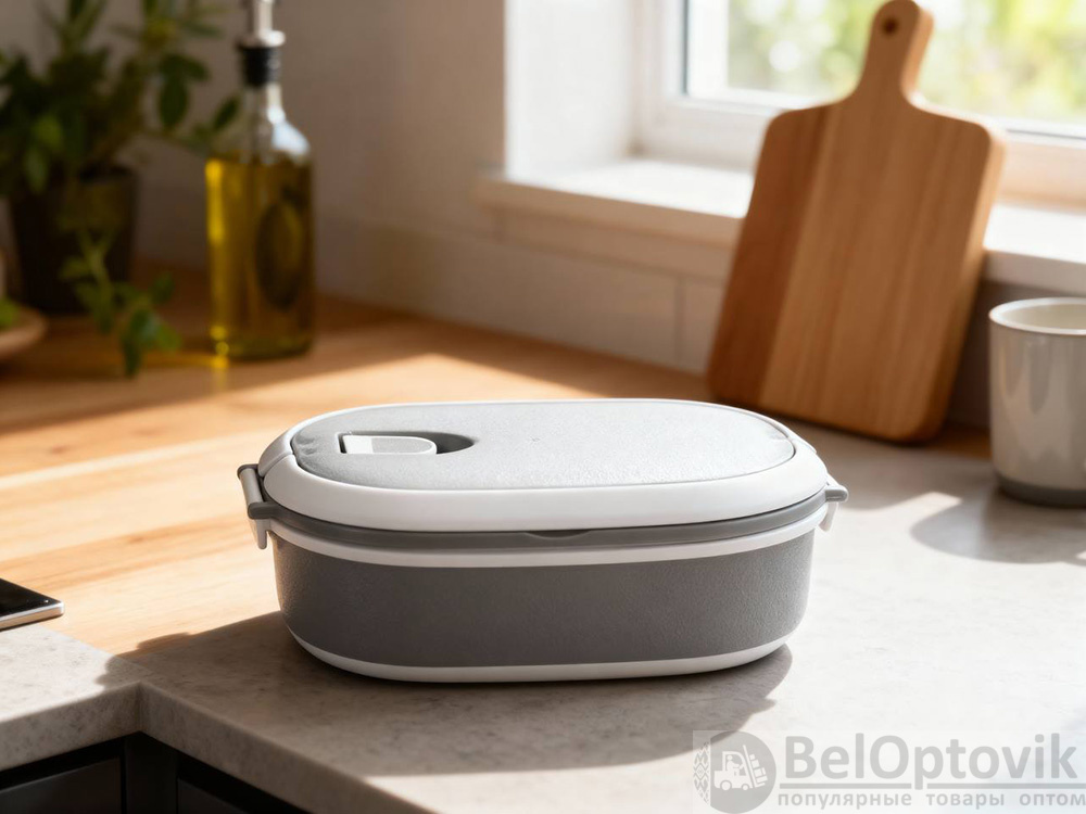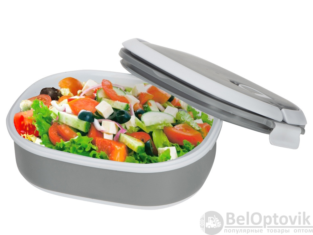 Контейнер оснащён удобными ручками и надёжными защёлками, которые обеспечивают плотное закрытие. Крышка дополнена специальным клапаном для выхода пара — удобно при разогреве в микроволновке.