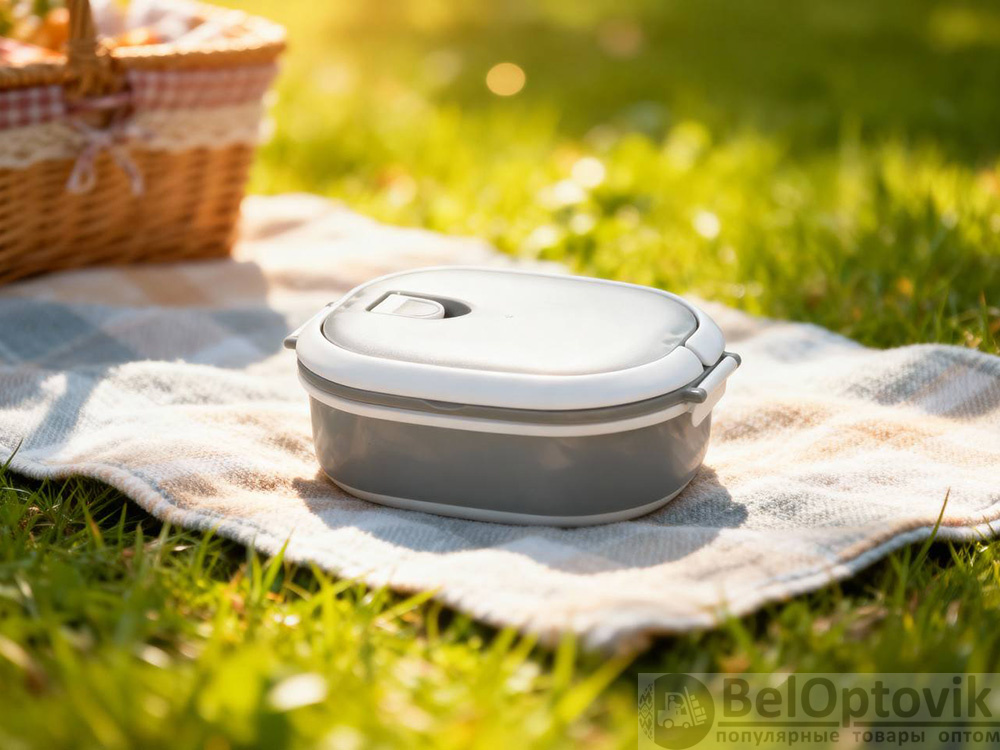 Материалы — пластик и термопластичная резина, безопасные для контакта с пищей и рассчитанные на длительное использование. Ланч-бокс плотно закрывается, что помогает избежать проливаний, однако не является полностью герметичным — идеально для твёрдых и густых блюд.