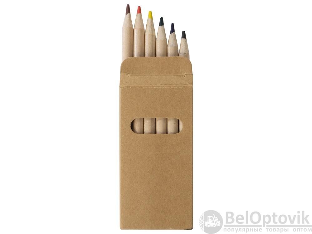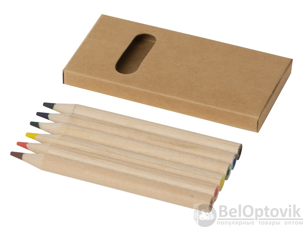 Набор из 6 цветных карандашей из натурального дерева. На картонную коробку и карандаши можно нанести логотип.