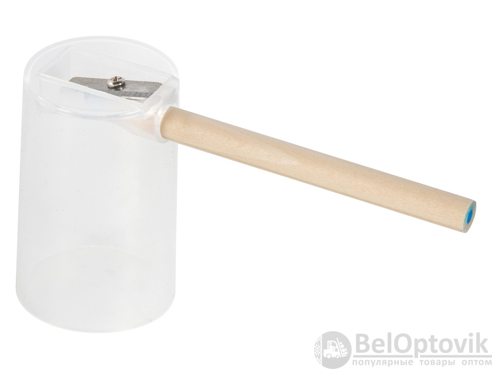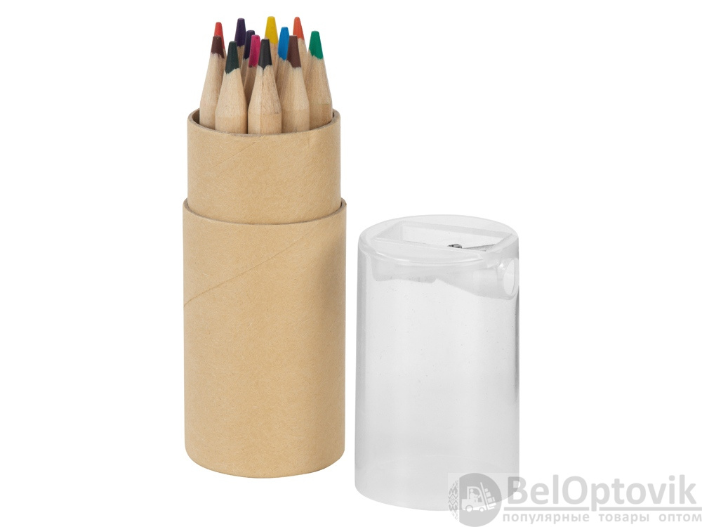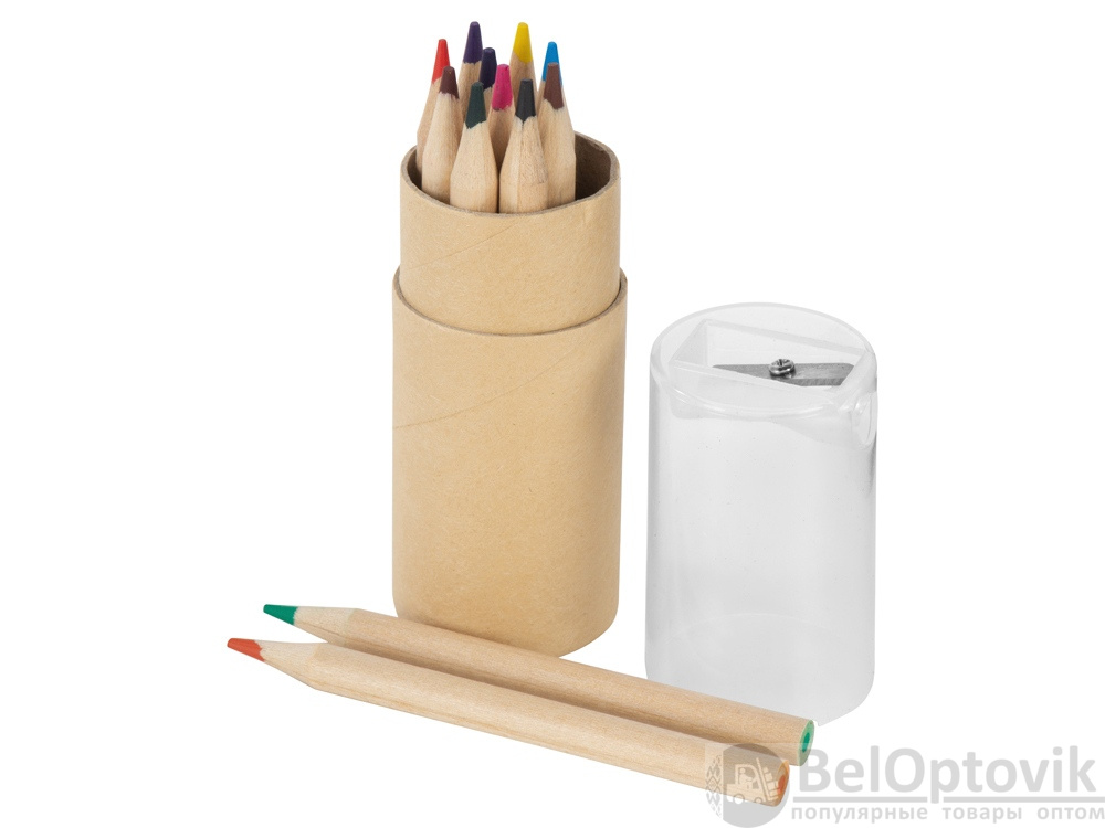 Набор из 12 маленьких карандашей в картонном стакане с точилкой.