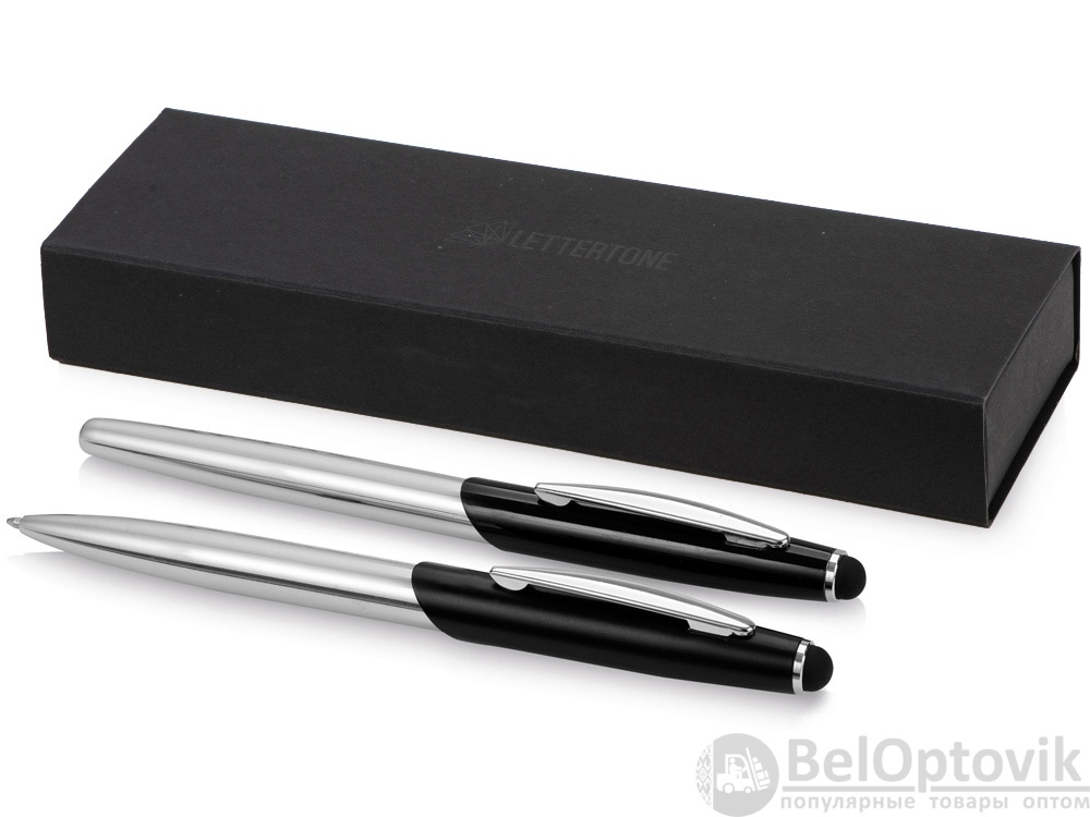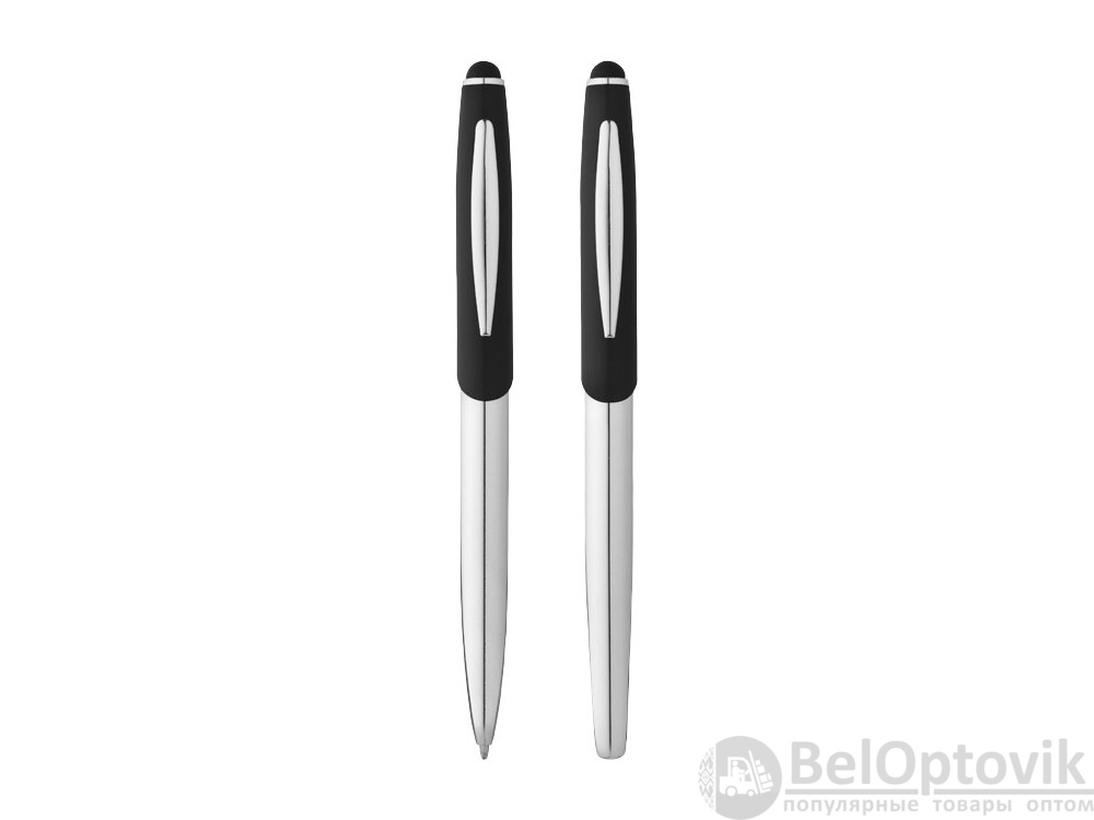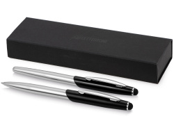 Набор состоит из 2-х ручек со стилусами: шариковой и роллера. Изящная шариковая ручка-стилус и ручка-роллер с матовой верхней частью и блестящей хромированной нижней частью и соответствующими хромированными вставками. Набор ручек Roma будет отличным деловым подарком к любому празднику.