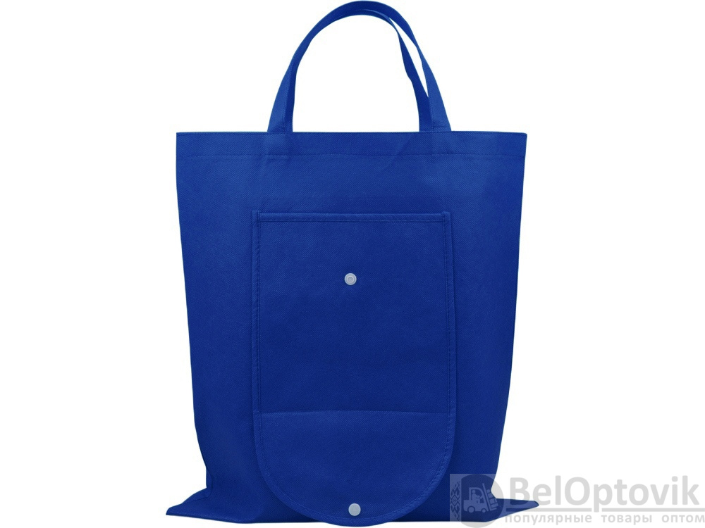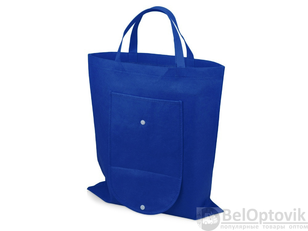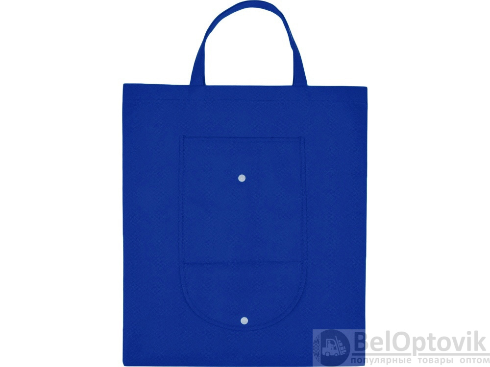 Вместительная складная сумка из нетканого материала с открытым основным отделением и карманом на пластиковой кнопке спереди. Многоразовая сумка- отличная альтернатива пластиковому пакету. Высота ручек 15 см.