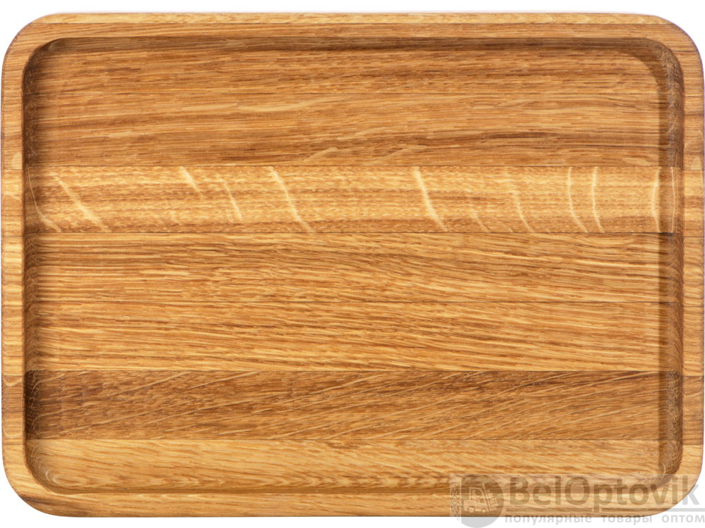 Универсальный деревянный поднос от Eat&Bite, который в перевернутом виде может играть роль разделочной доски — нижняя часть не имеет выступов, абсолютно плоская. Выполнен из натурального дуба, обработанного натуральным растительным маслом, которое обеспечивает изделию более долгую жизнь.