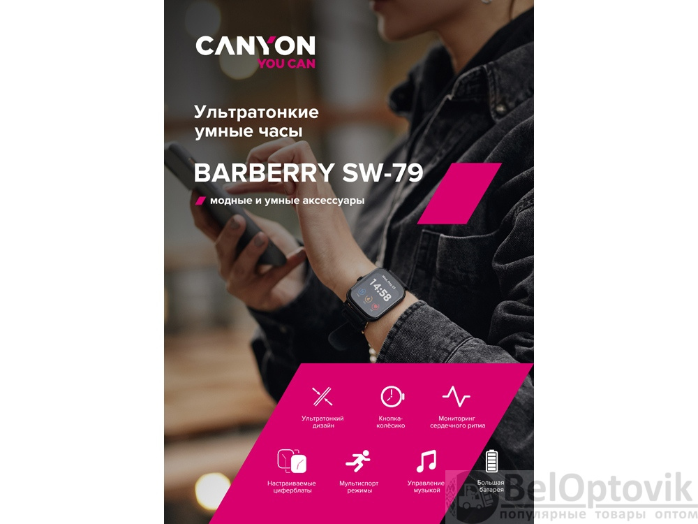 Модель SW-79 отличается большими циферблатом и прочным металлическим корпусом. Вдобавок к сенсорному экрану, для дополнительного удобства в управлении предусмотрена также кнопка-колесико. Несмотря на большой экран, часы долго держат заряд и работают до 5-7 дней без подзарядки. Мгновенное подключение к смартфону через BT 5.1, при помощи фирменного приложения Canyon Life. Собирайте всю необходимую информацию о вашей физической активности и качестве сна, и просматривайте ее в наглядном интерфейсе приложения. Подберите формат циферблата, чтобы контролировать необходимые показатели и просматривать уведомления о сообщениях.