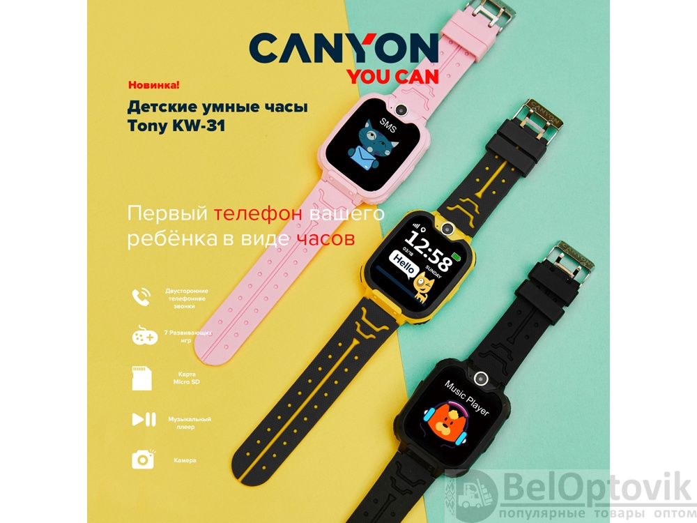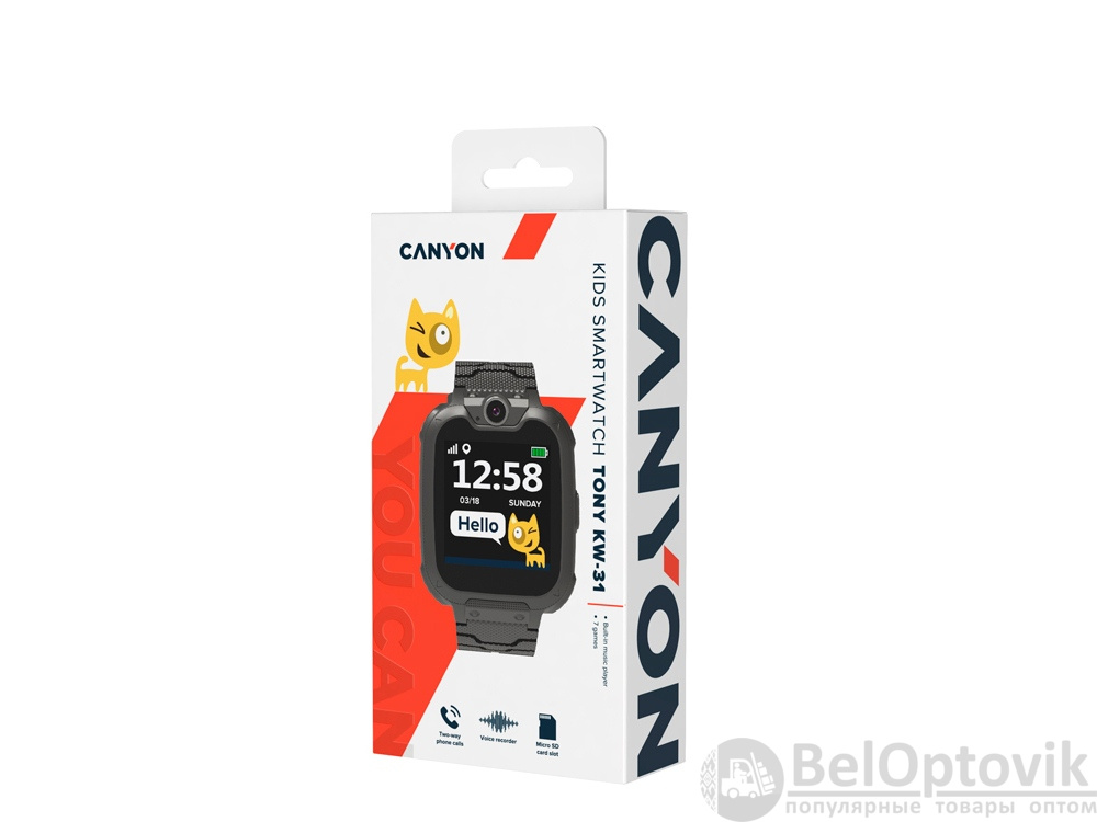 Часы Tony KW-31 от Canyon — это детский телефон в виде часов. Установите в часы GSM-сим-карту 2G, и ребенок сможет звонить и принимать звонки с помощью этого маленького гаджета. Фотокамера и диктофон позволят малышу сохранять фото и голосовые сообщения о том, как прошла учеба или отдых. Слот для карты памяти microSD для воспроизведения музыки или аудиокниги через динамик. Интересным дополнением станут 7 развивающих игр, а также калькулятор, будильник, календарь, секундомер. Батарея устройства рассчитана на работу до 4 дней без подзаряда.