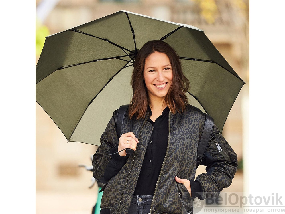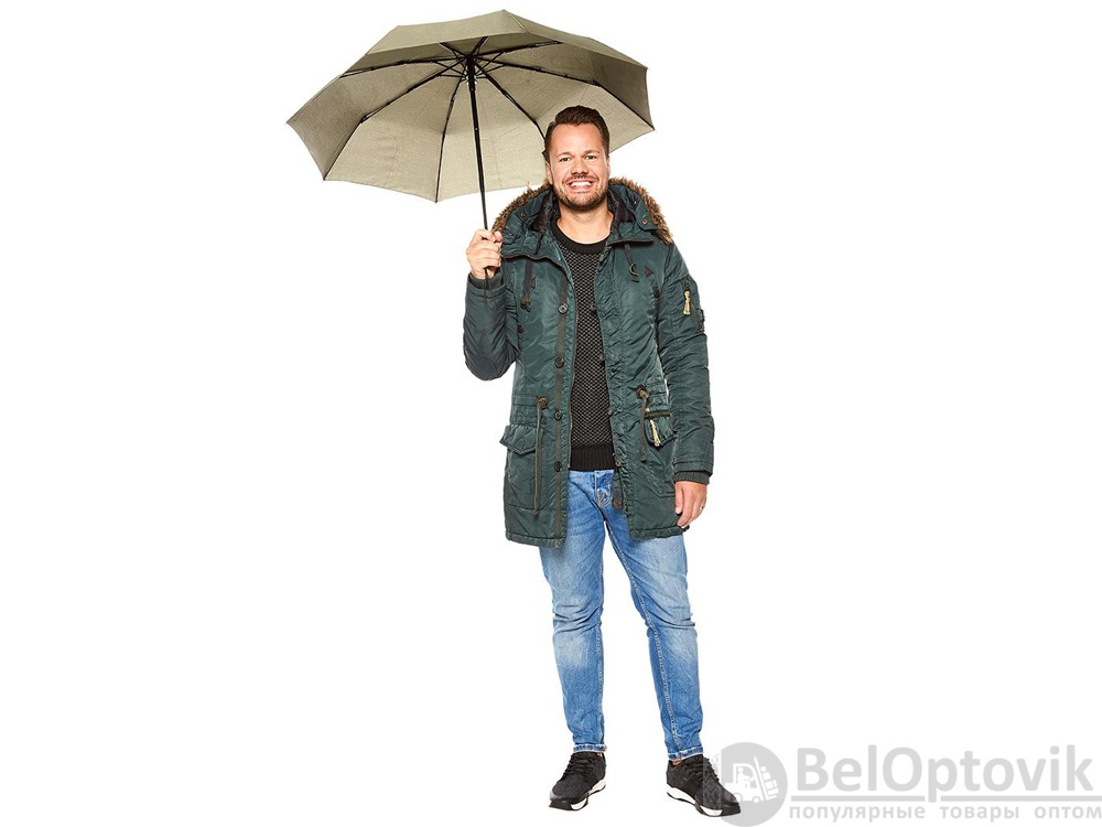 Добротный автоматический зонт с куполом из эпонжа и гибкими спицами из стекловолокна спасет от дождя и выстоит против порывов ветра. Чехол в комплекте