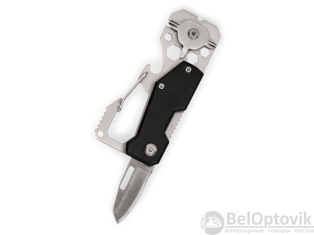 Многофункциональный инструмент с корпусом из прочной нержавеющей стали содержит 13 функций.