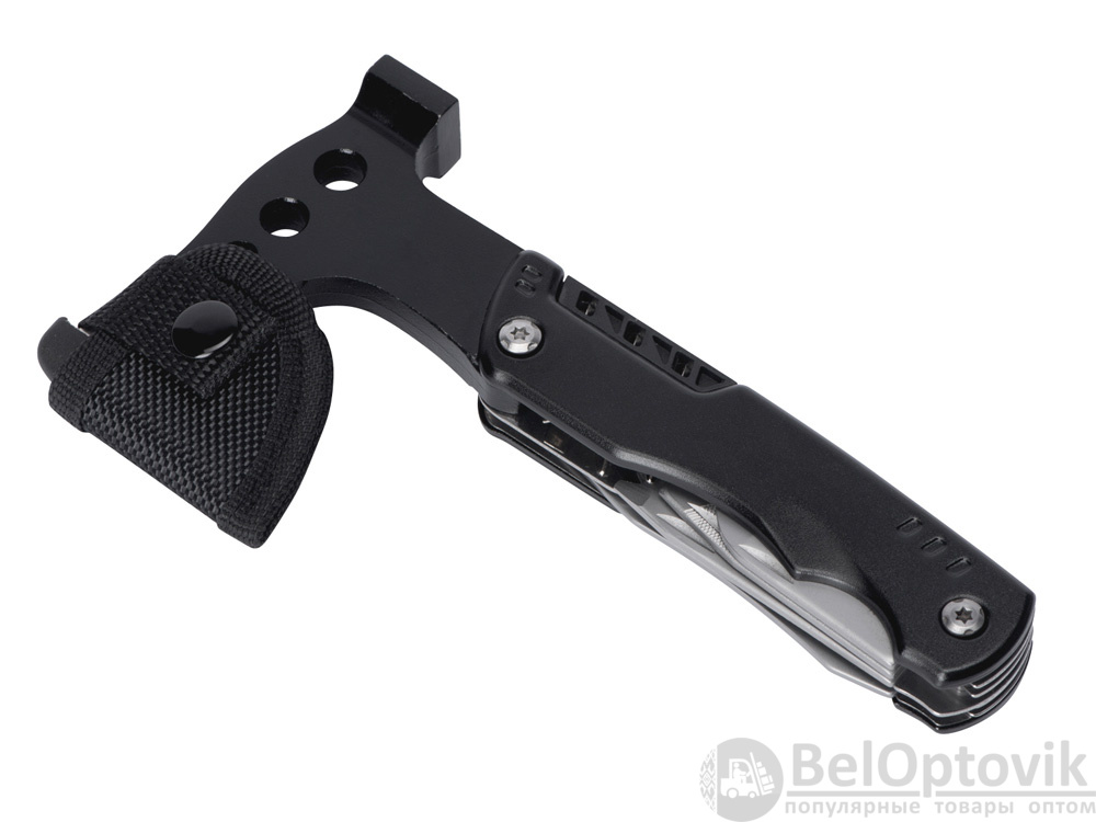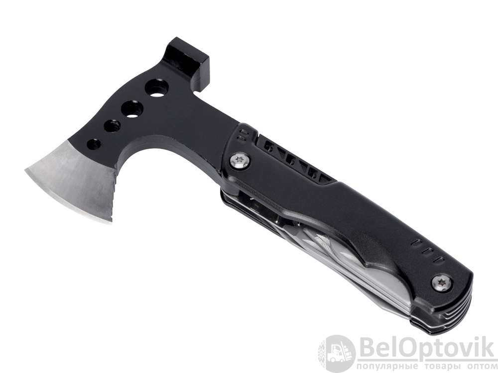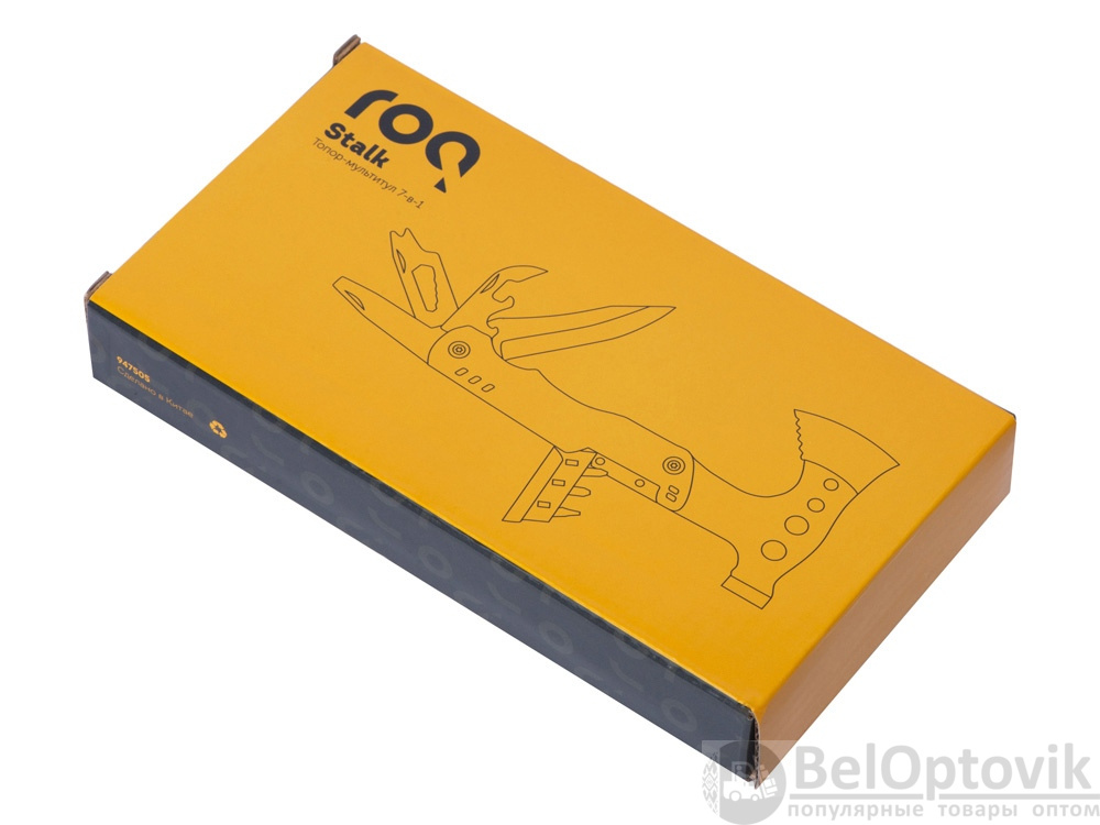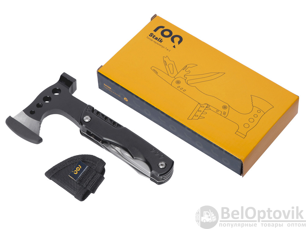 Топор-мультитул 7-в-1 «Stalk» бренда roq выполнен из нержавеющей стали 420 марки. Обладает значительным весом в 404 грамма для удобства работы топором или молотком. Товар поставляется в брендированном нейлоновом чехле с защитной накладкой на острие топора, что делает его транспортировку абсолютно безопасной.