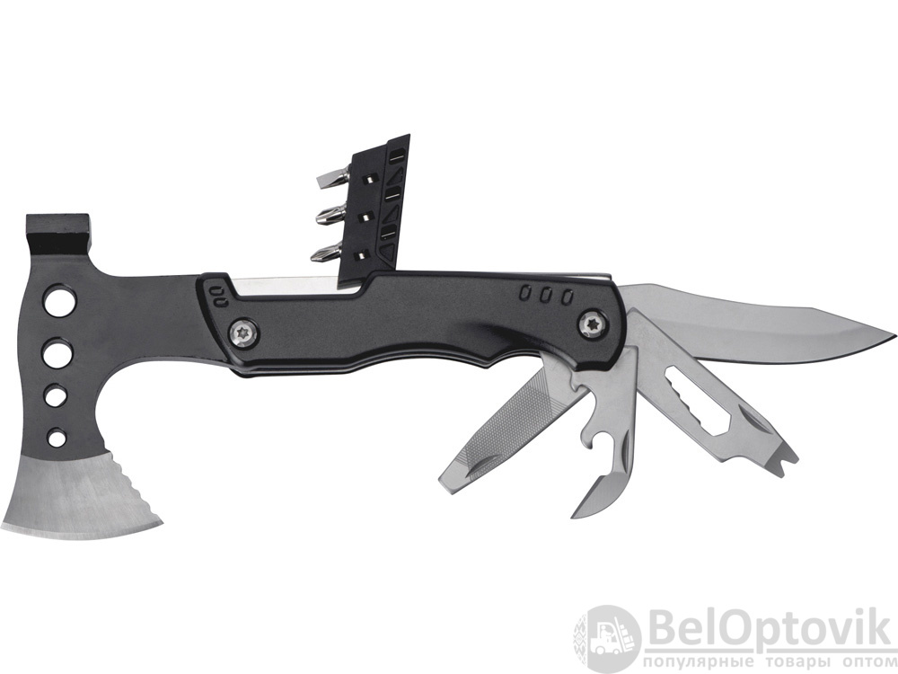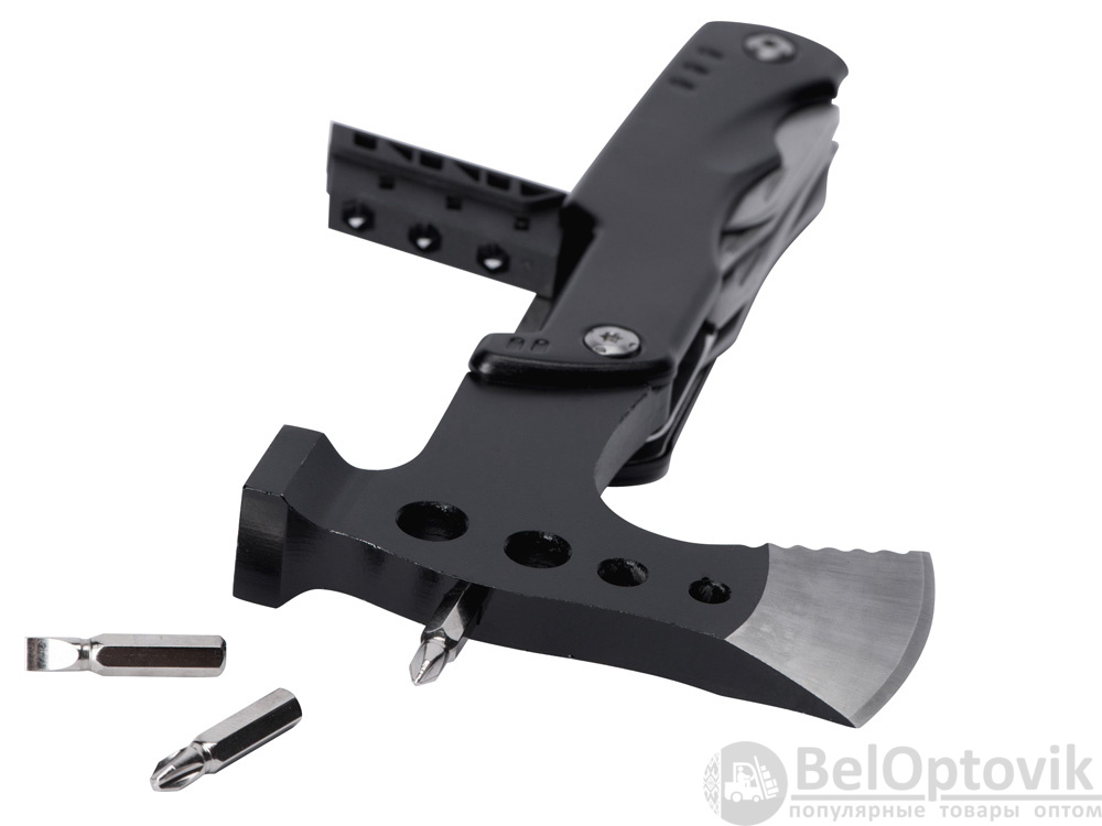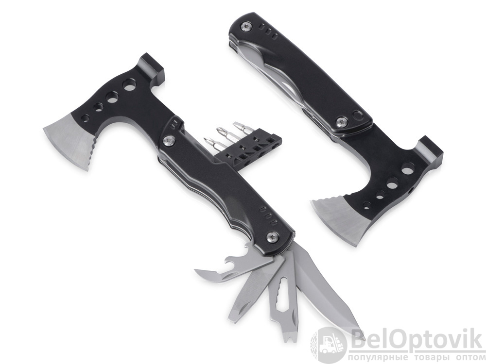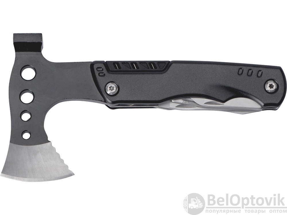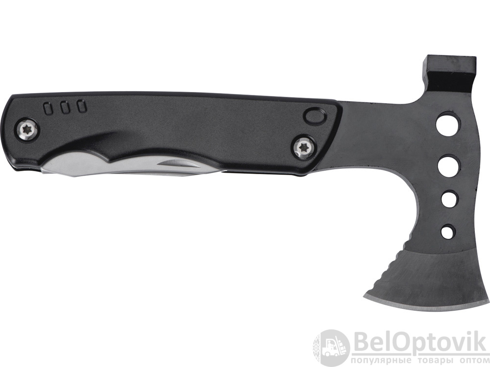 Топор-мультитул 7-в-1 «Stalk» бренда roq выполнен из нержавеющей стали 420 марки. Обладает значительным весом в 404 грамма для удобства работы топором или молотком. Товар поставляется в брендированном нейлоновом чехле с защитной накладкой на острие топора, что делает его транспортировку абсолютно безопасной.