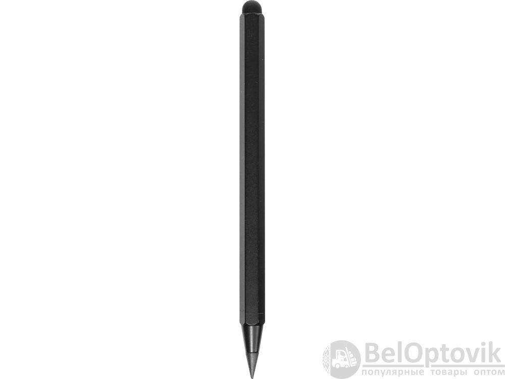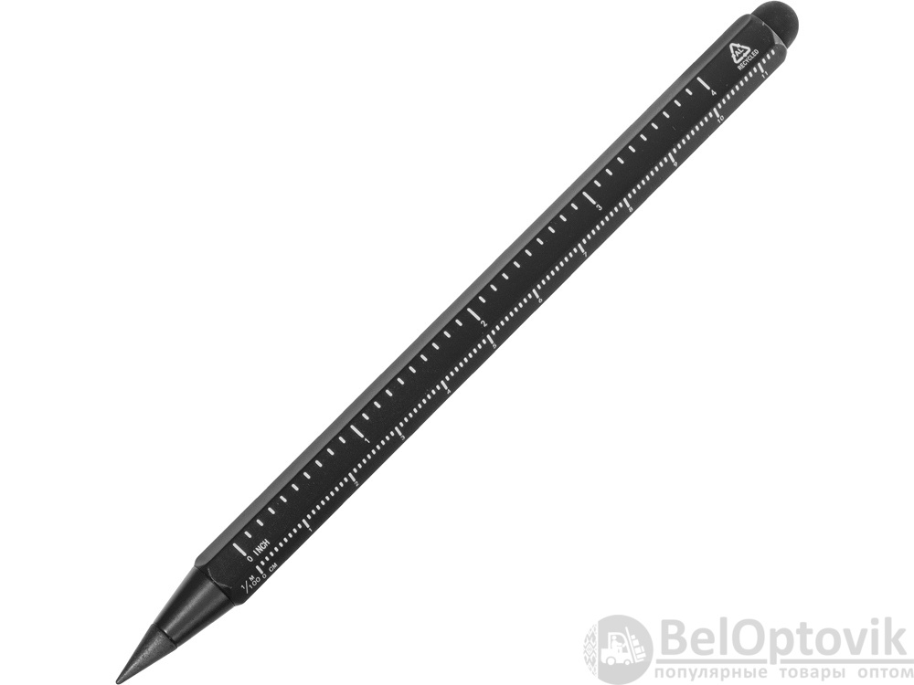 Карандаш изготовлен из переработанного алюминия. В отличие от обычных карандашей его не нужно точить, и он не пачкает руки.