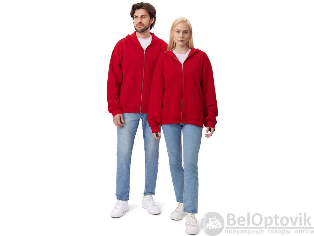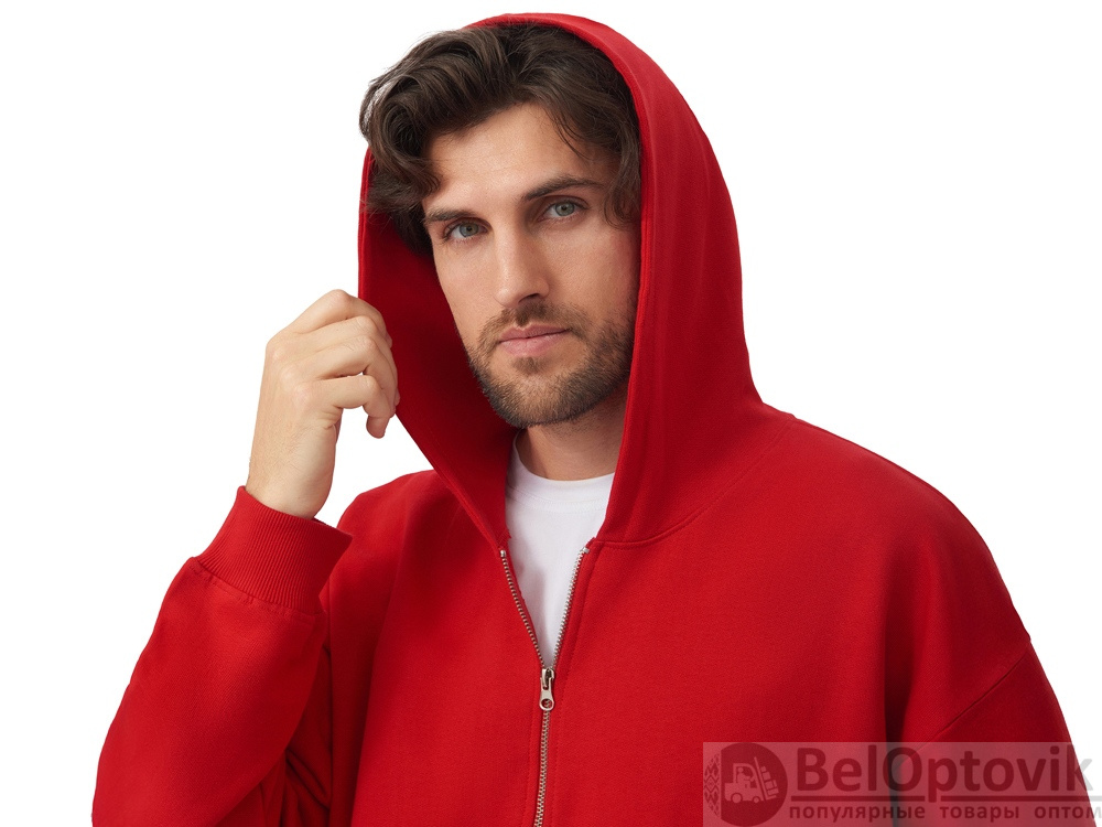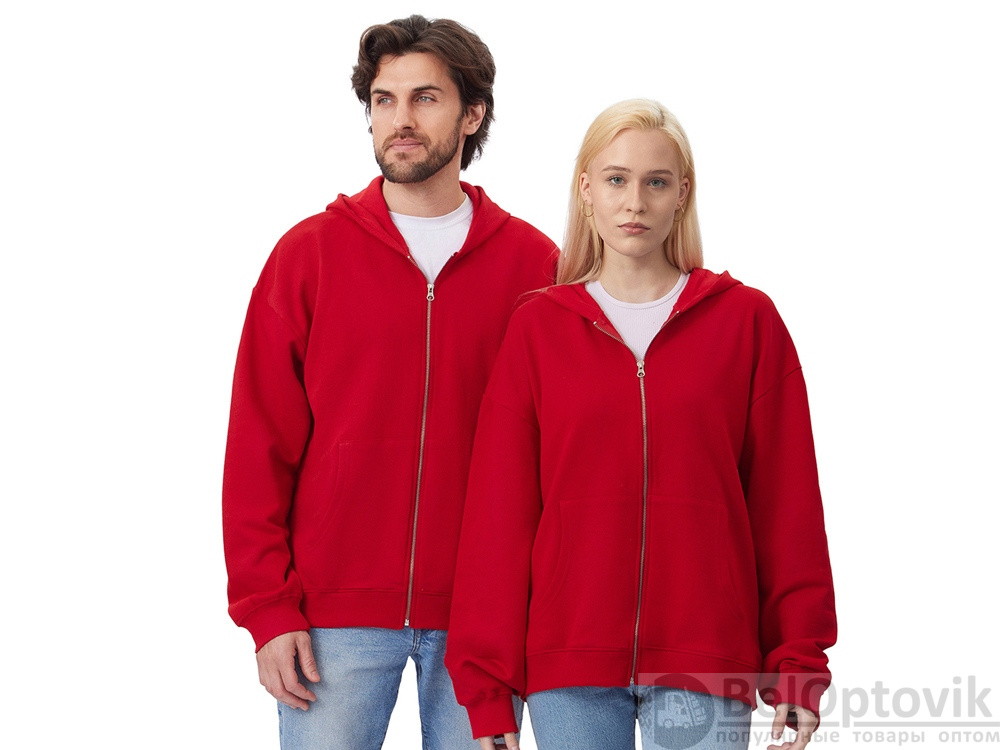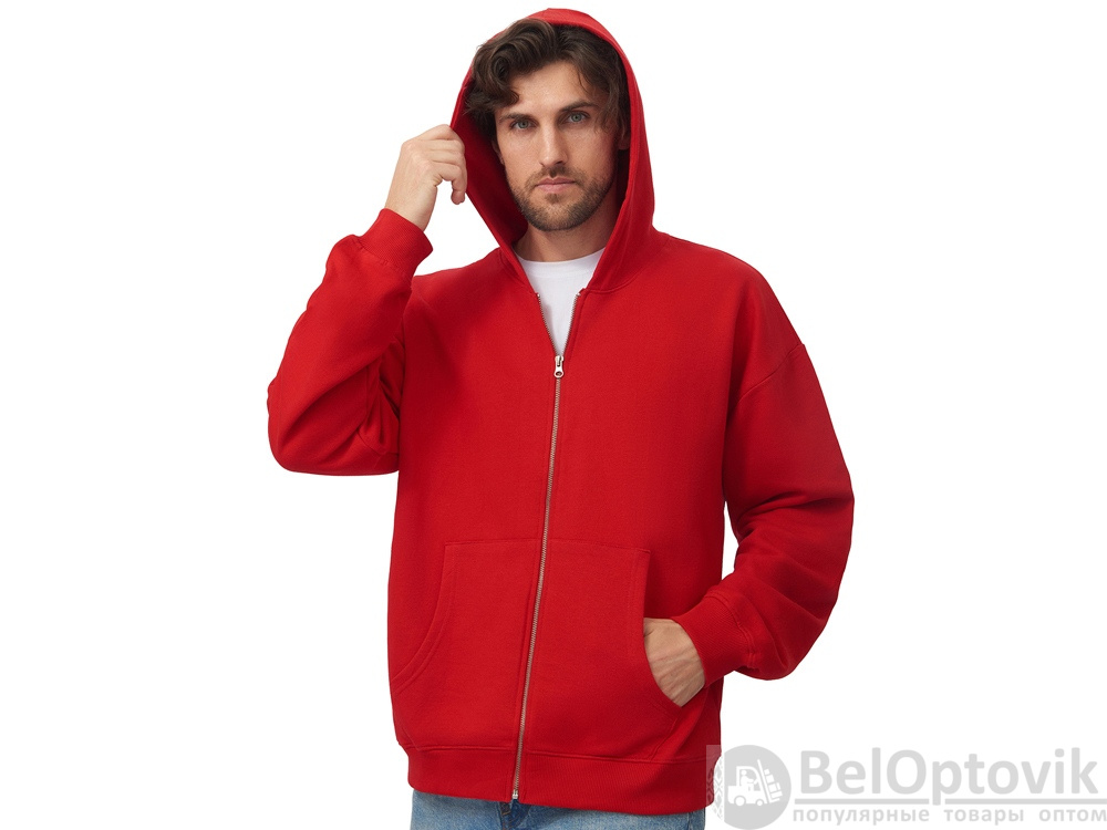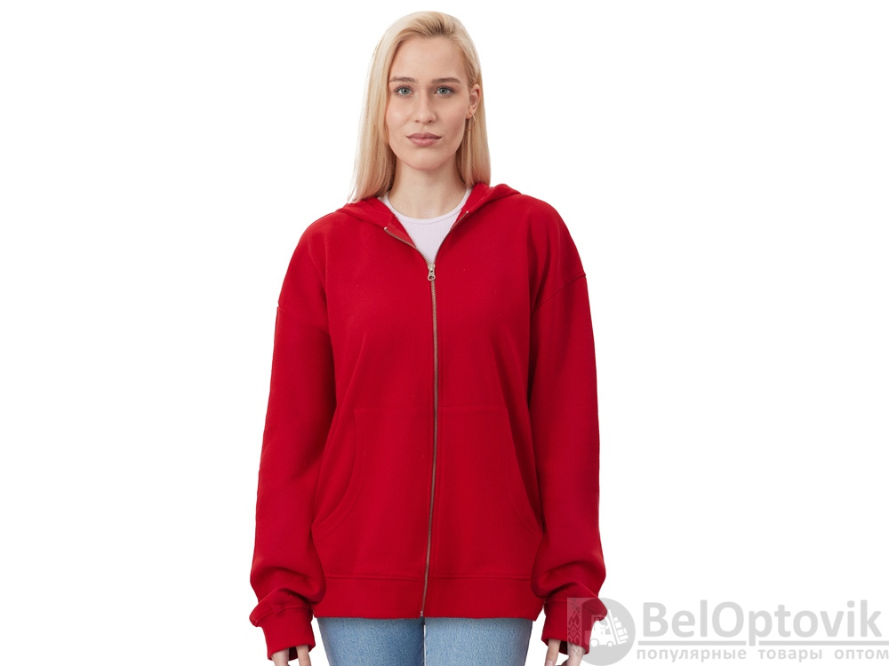 Толстовка оверсайз с капюшоном на молнии «Monaco», Размер XS-S, Цвет красный