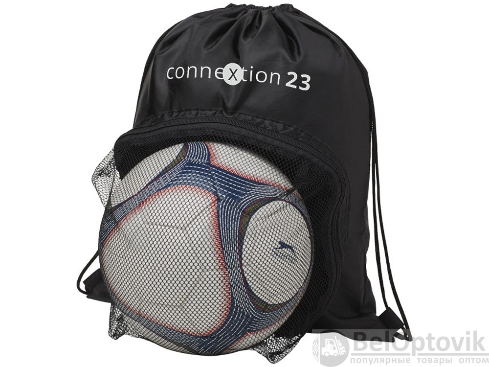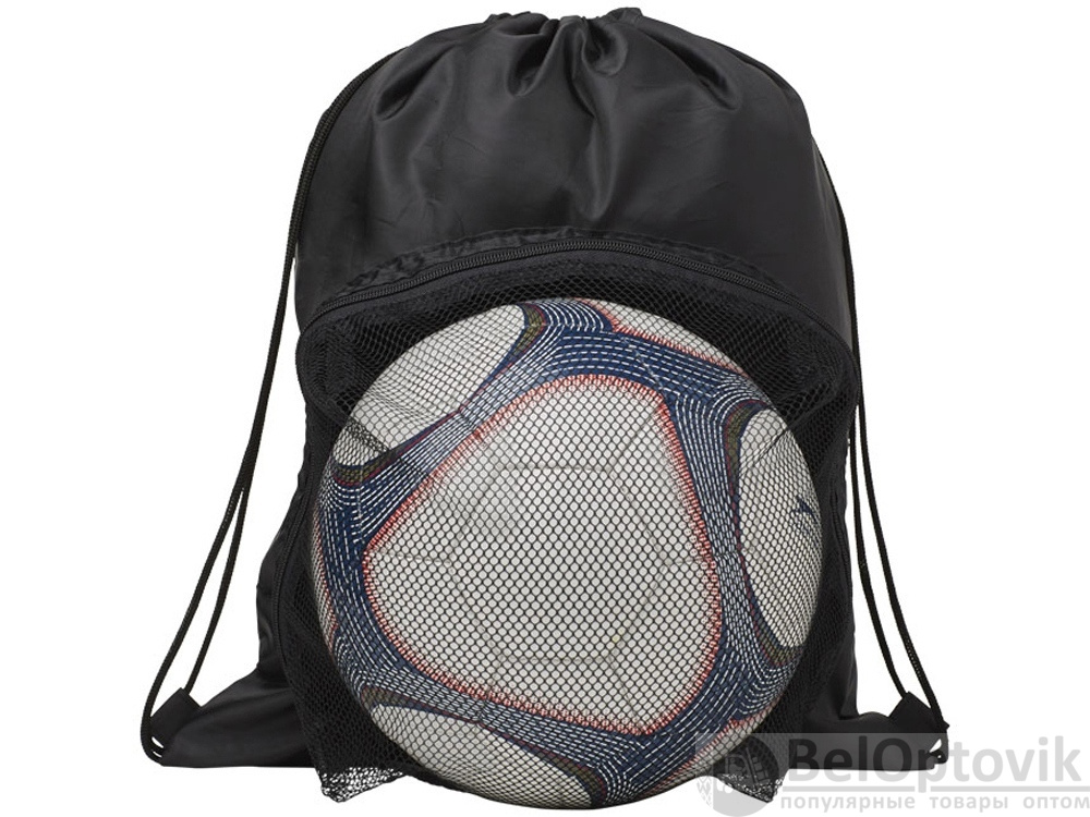 Спортивный рюкзак, стягивающийся вверху шнуром. Большое основное отделение с кулиской. Сетчатое отделение на молнии спереди для футбольного мяча.