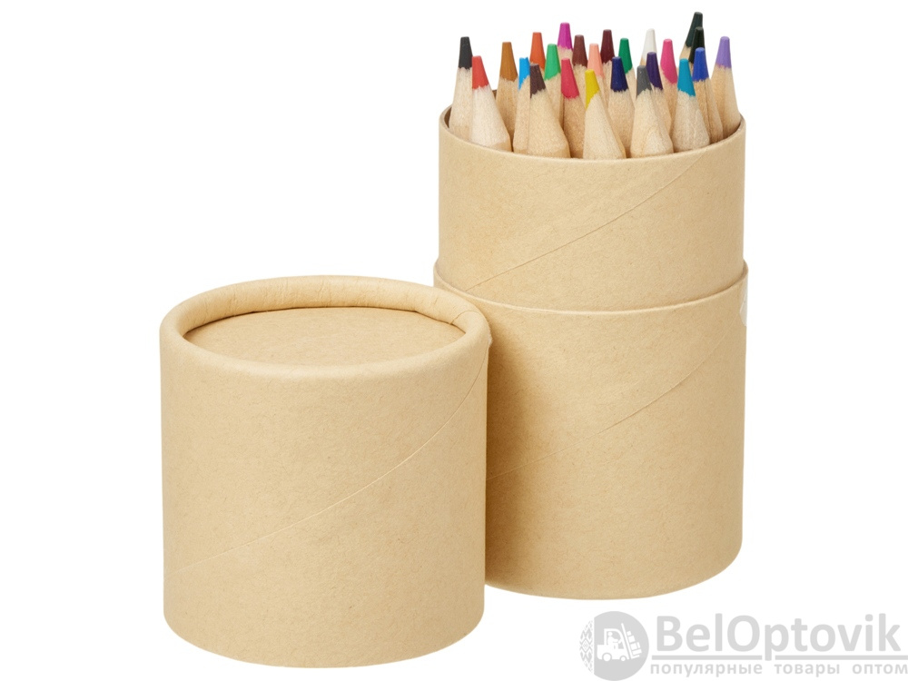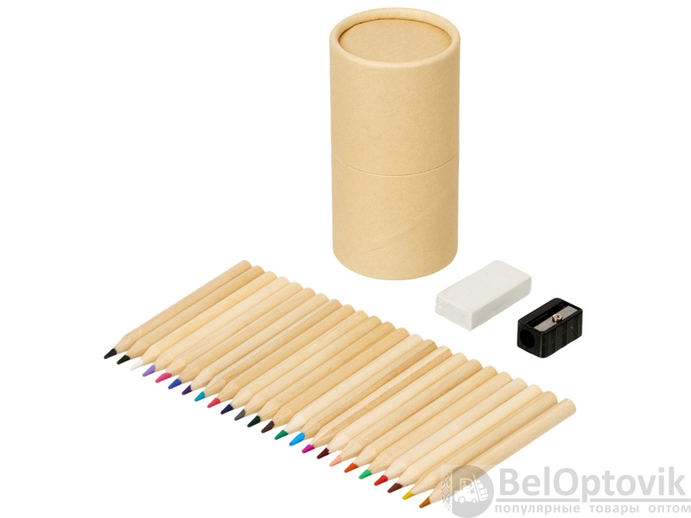- Комплектность: цветные карандаши d0,7 х 8,8 см - 24 шт, ластик, точилка, картонная цилиндрическая коробк