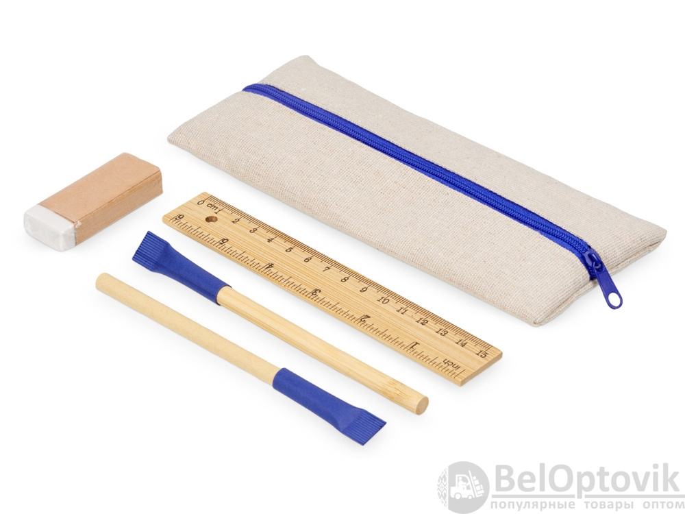 Удобный набор канцелярии со всем необходимым. В наборе: пенал на молнии, ручка Recycled, вечный карандаш в бамбуковом корпусе с колпачком из переработанной бумаги, ластик и бамбуковая линейка. Чтобы все самые необходимые пишущие принадлежности были под рукой.