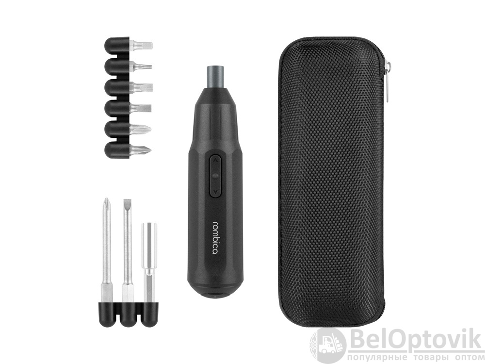 Компактная портативная отвертка с возможностью обратного хода. В комплекте 8 бит и чехол.