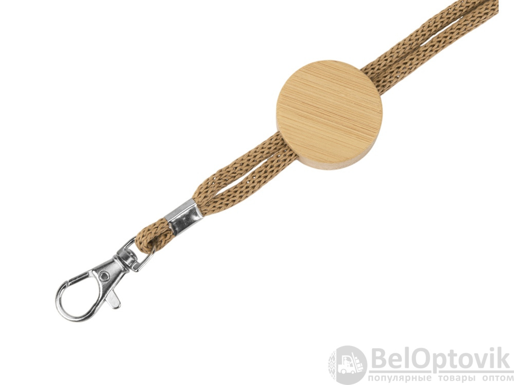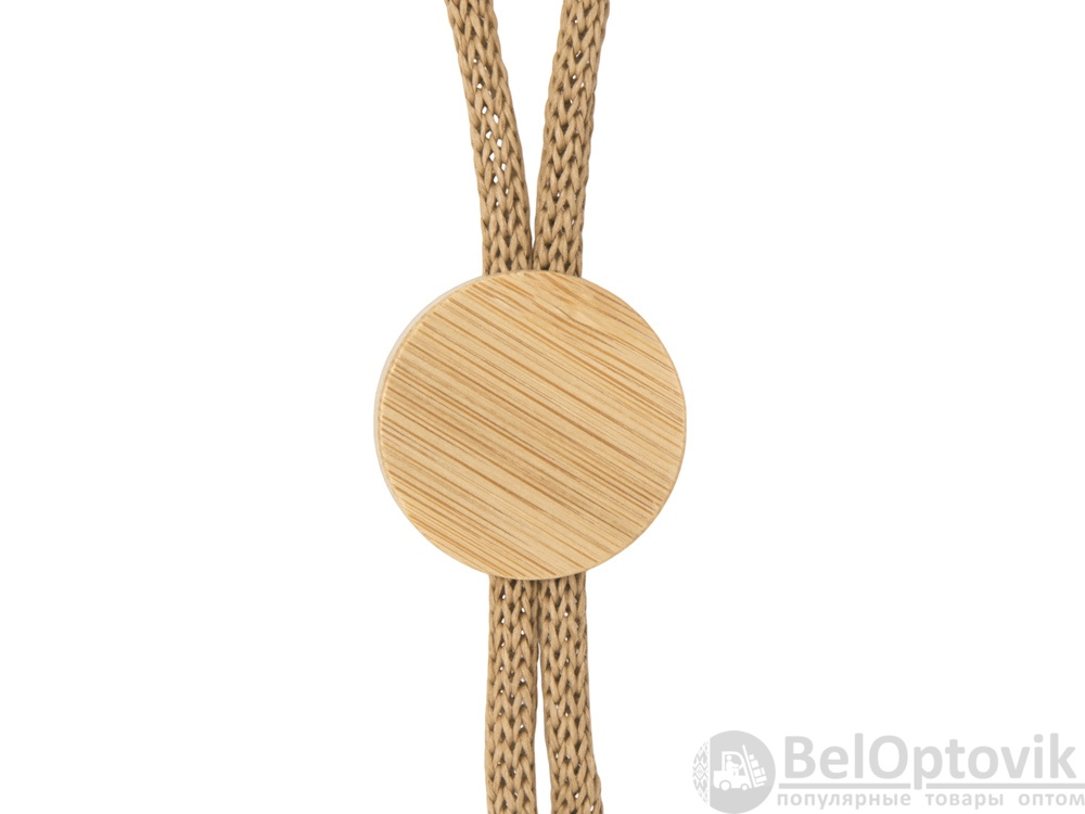 Шнурок изготовлен из переработанной бумаги и дополнен бамбуковой плашкой, на которую можно нанести логотип.