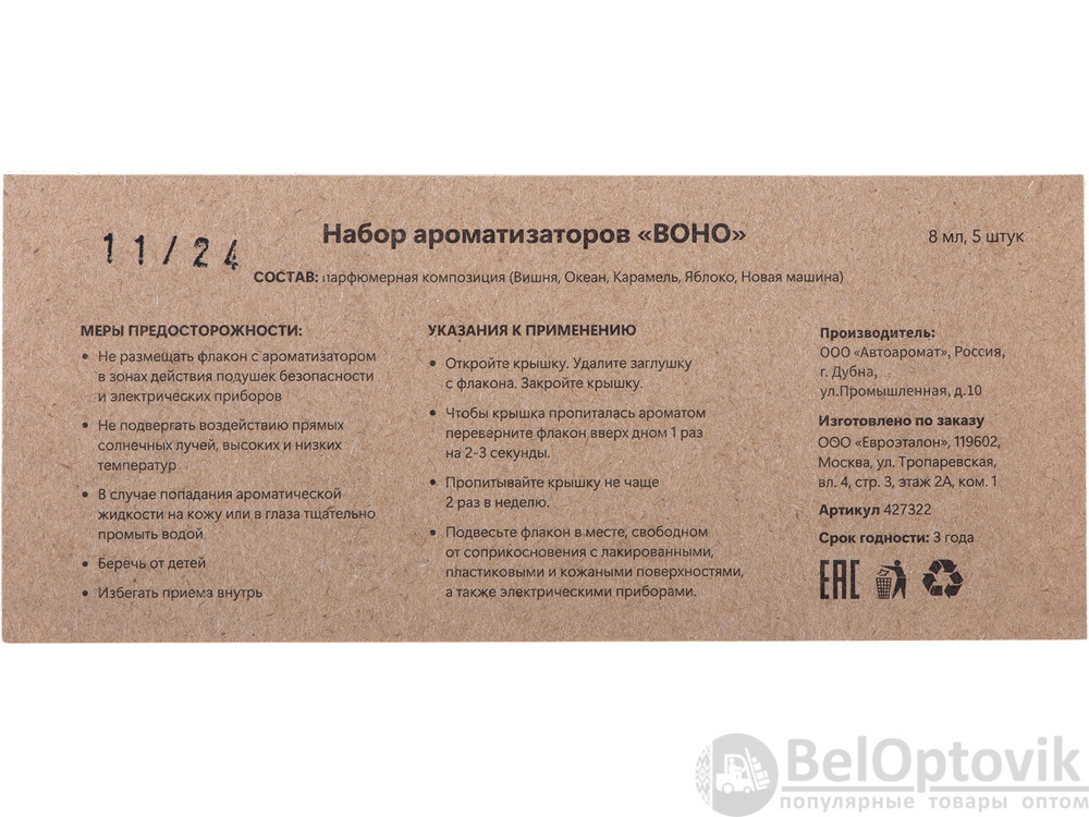 Набор подвесных ароматизаторов воздуха Boho 5 будет отличным подарком для автовладельцев и не только. Диффузор также можно применить и для локальной ароматизации дома, офиса, ванной и любой другой комнаты. В наборе 5 ароматов: Вишня, Океан, Карамель, Яблоко, Новая машина. Каждый ароматизатор имеет привлекательный внешний вид и удобную форму. Бамбуковая крышка отлично впитывает и долго держит аромат. Для усиления эффекта можно перевернуть флакон на 1-2 секунды.