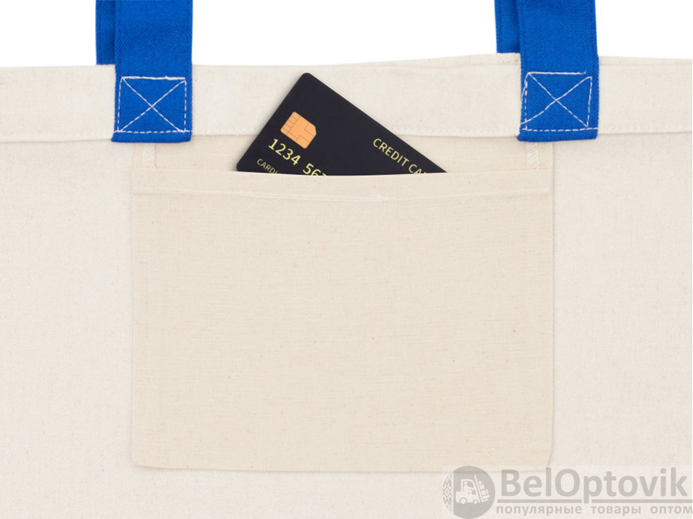Сумка для шоппинга «Cotton» из переработанного хлопка, 280 г/м2, Цвет натуральный/синий