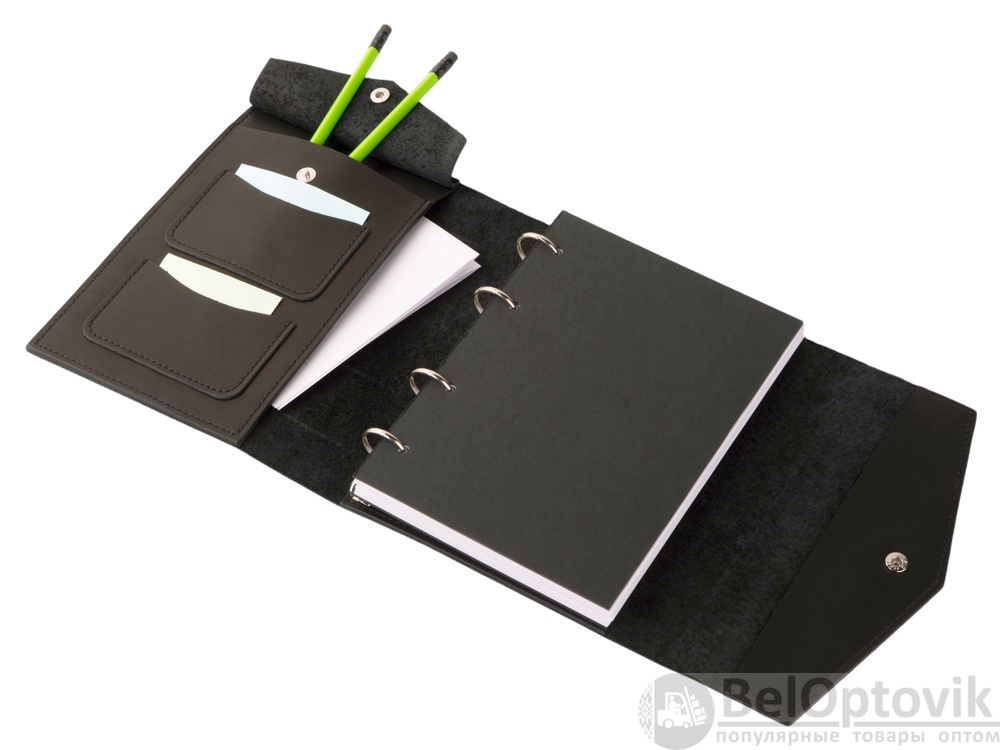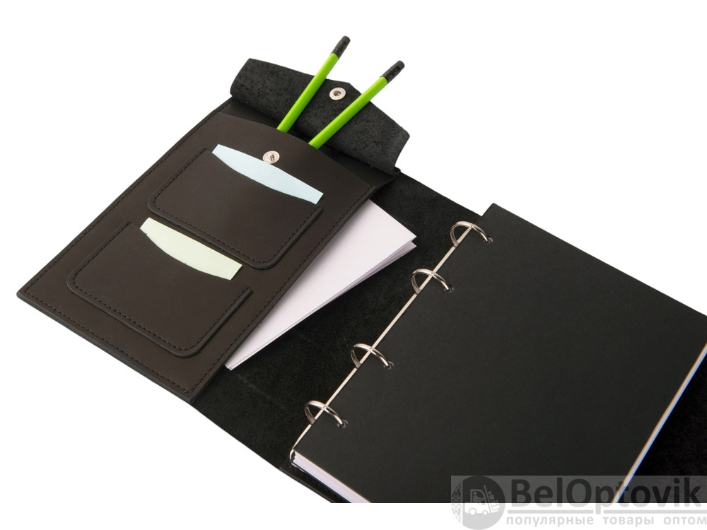 Кожаный блокнот на кольцах формата А5 со сменными блоками.