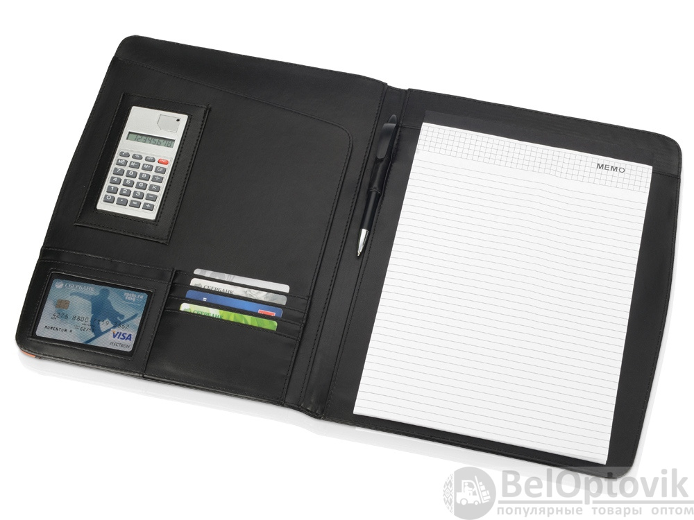 Стильная папка для документов Guidon – прекрасный подарок для делового человека. Папка формата А4 со сменным блокнотом и встроенным калькулятором. Сделана из искусственной кожи, особенно стильный вид ей придает цветная отделка внутри и снаружи. На лицевую сторону можно сделать нанесение шильда или тиснение.
